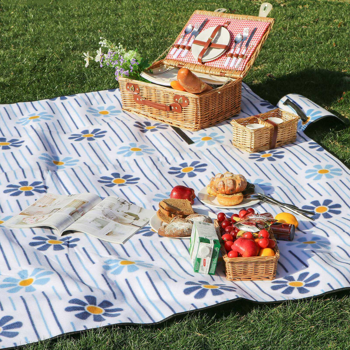 Picknickdeken flanel bloemen XXL 200 x 200 cm