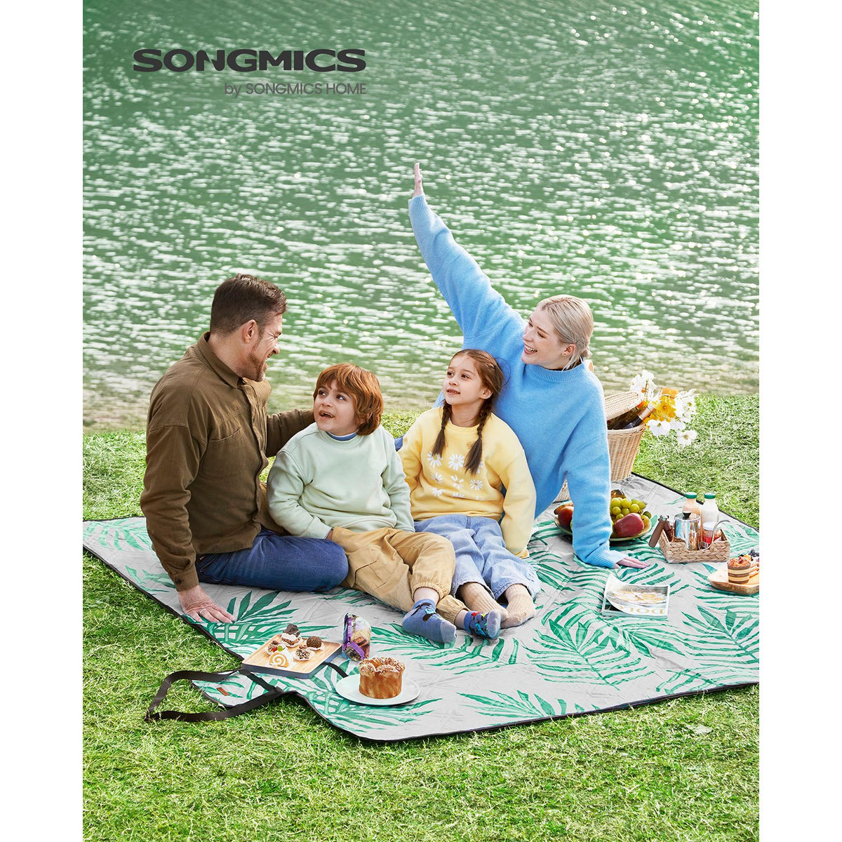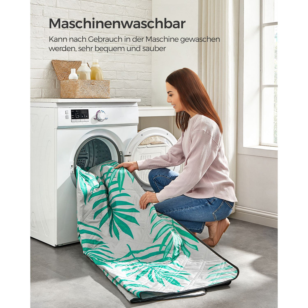 Picknickkleed 200 x 200 cm grijs met tropische varen