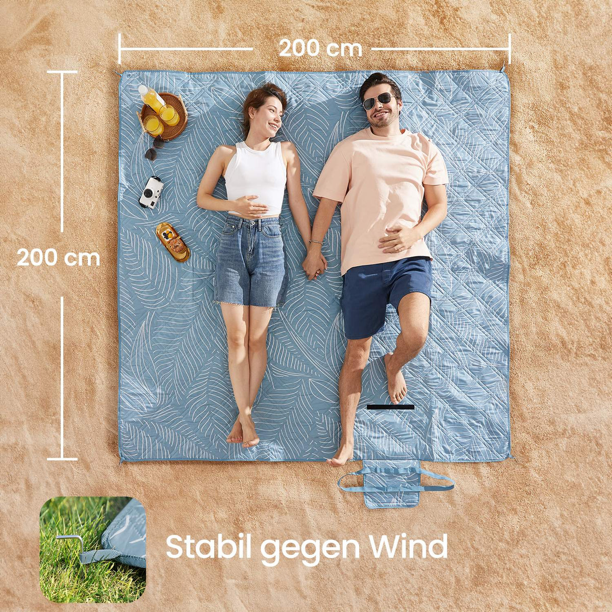 Picknickkleed, 200 x 200 cm, met 4 grondankers - GCMB35010Q02