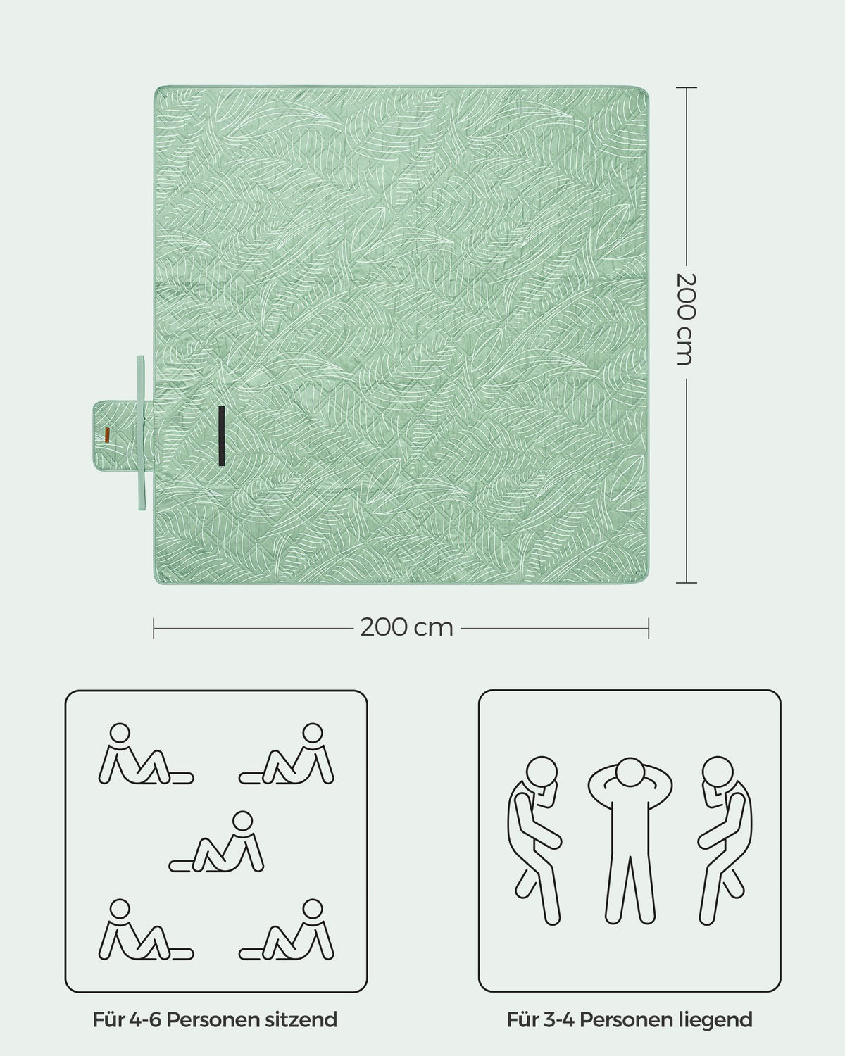 Picknickkleed met 4 grondankers, waterdicht en machinewasbaar 200 x 200 cm