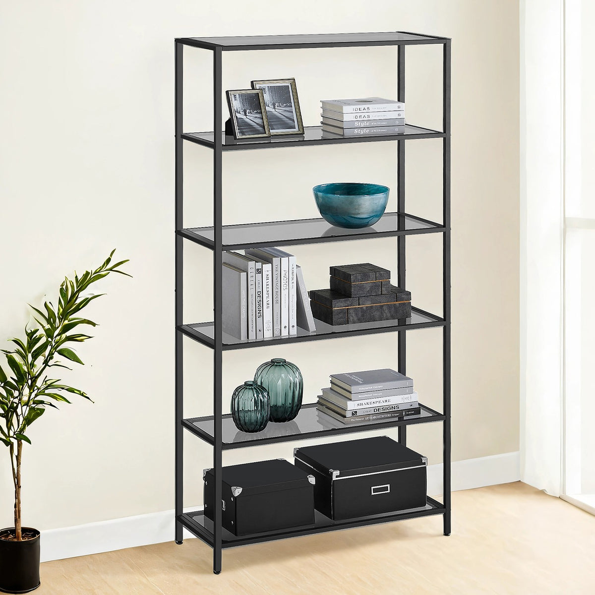 Plank met 6 planken, gehard glas, leigrijs-inktzwart 3 cm - LGTB35503G01