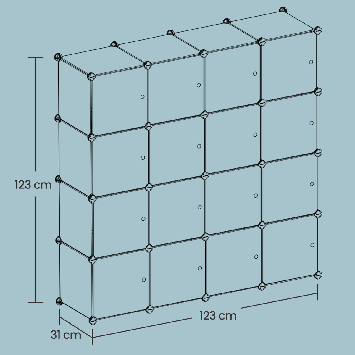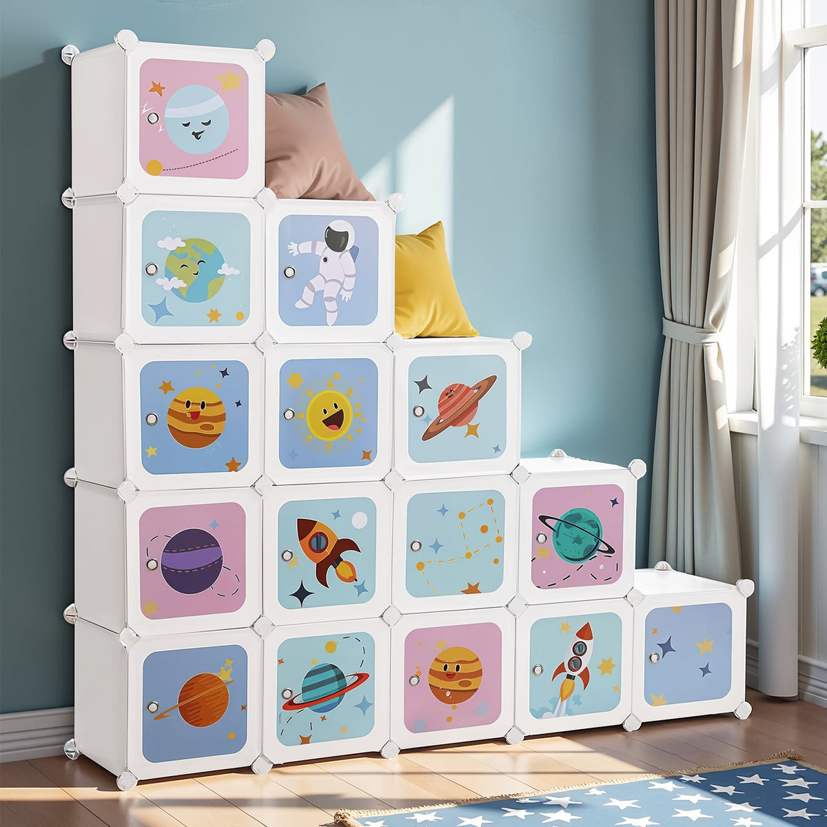 Plankensysteem met 15 kubussen, opbergkast voor kinderen, kledingkast met deuren 123 x 31 x 123 cm