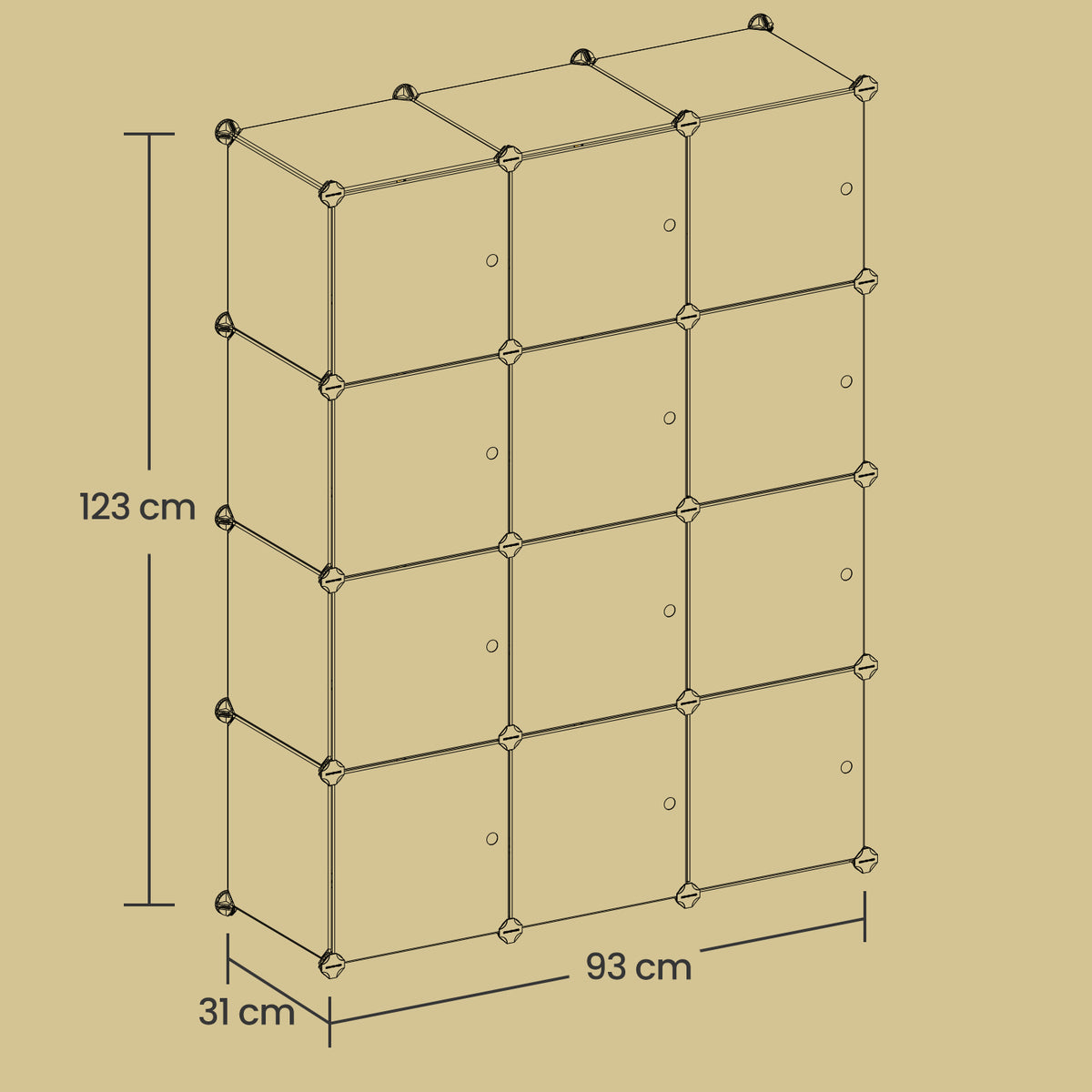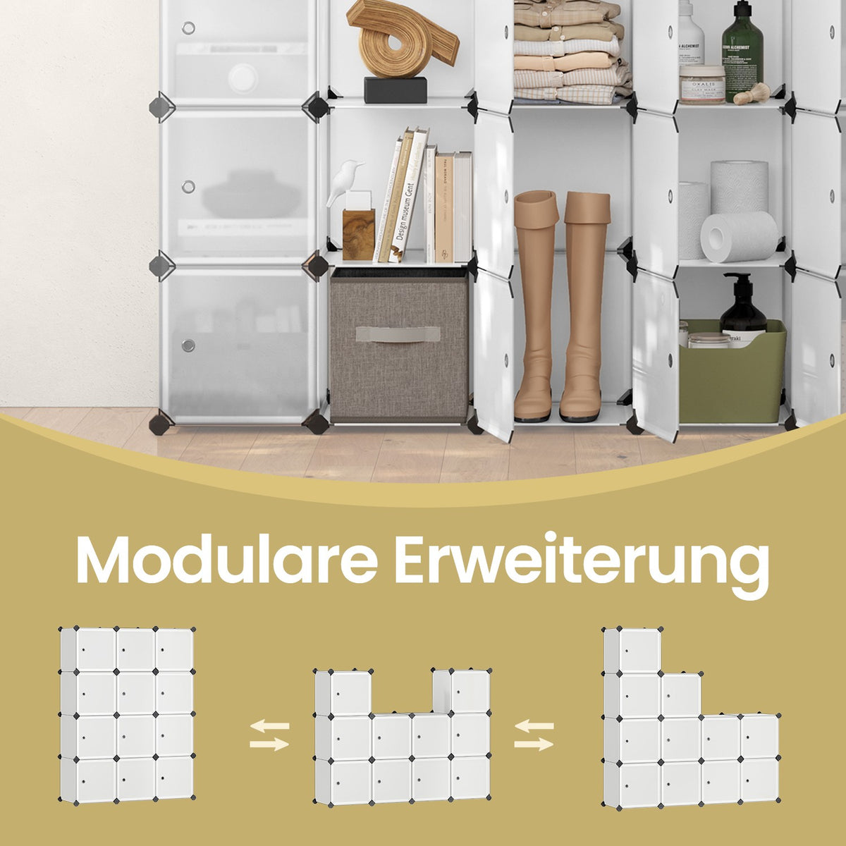 Plankensysteem, schoenenrek met deuren, set van 12 kubussen 93 x 31 x 123 cm