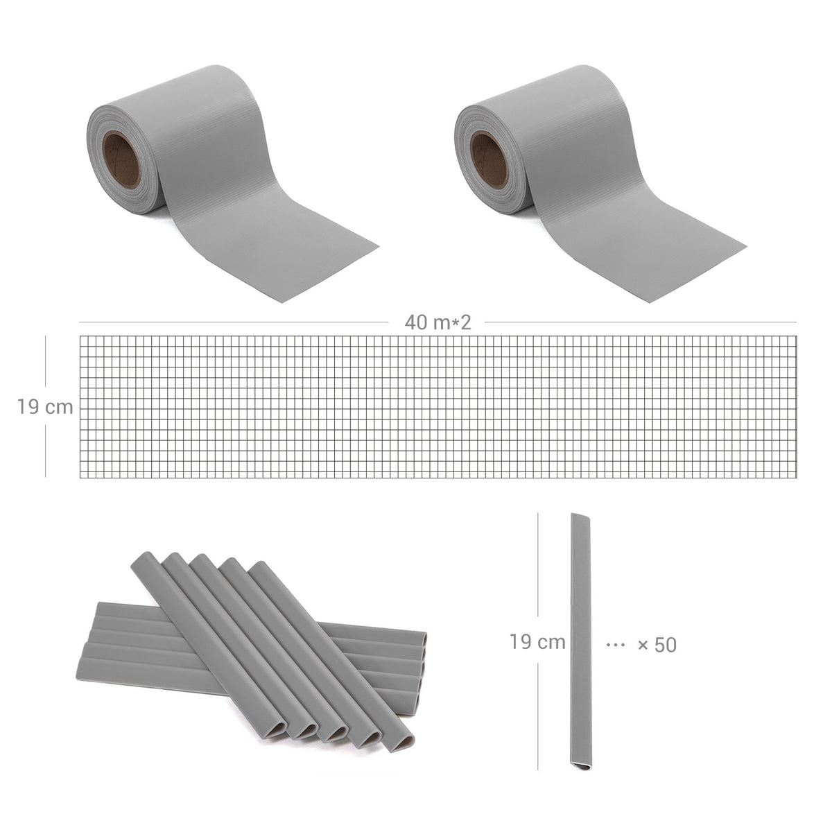 Privacyschermstrook 40 m lichtgrijs 19 cm