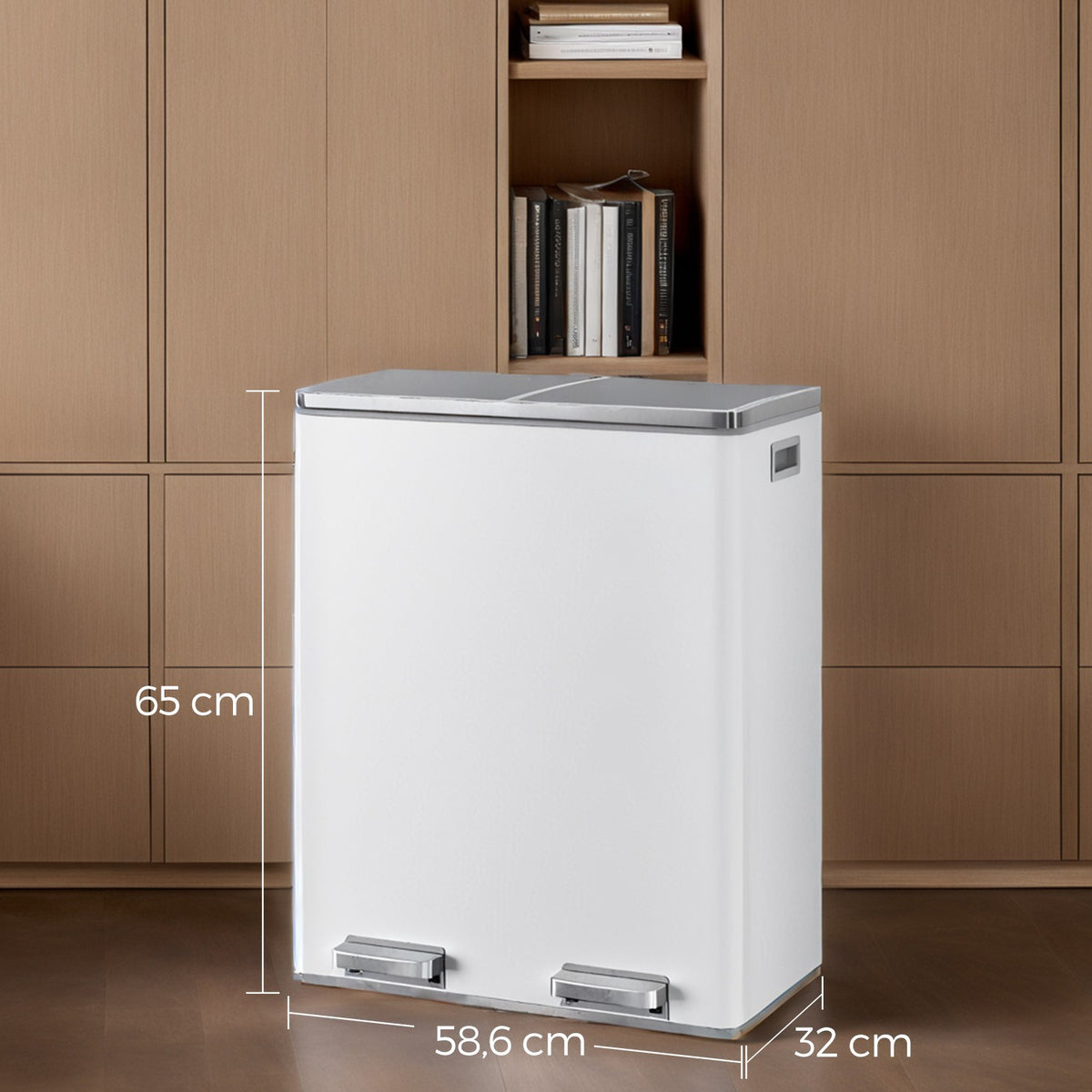 Prullenbak, 2 x 30 liter, 2 compartimenten 58,6 x 32 x 65 cm - LTBB3560WT