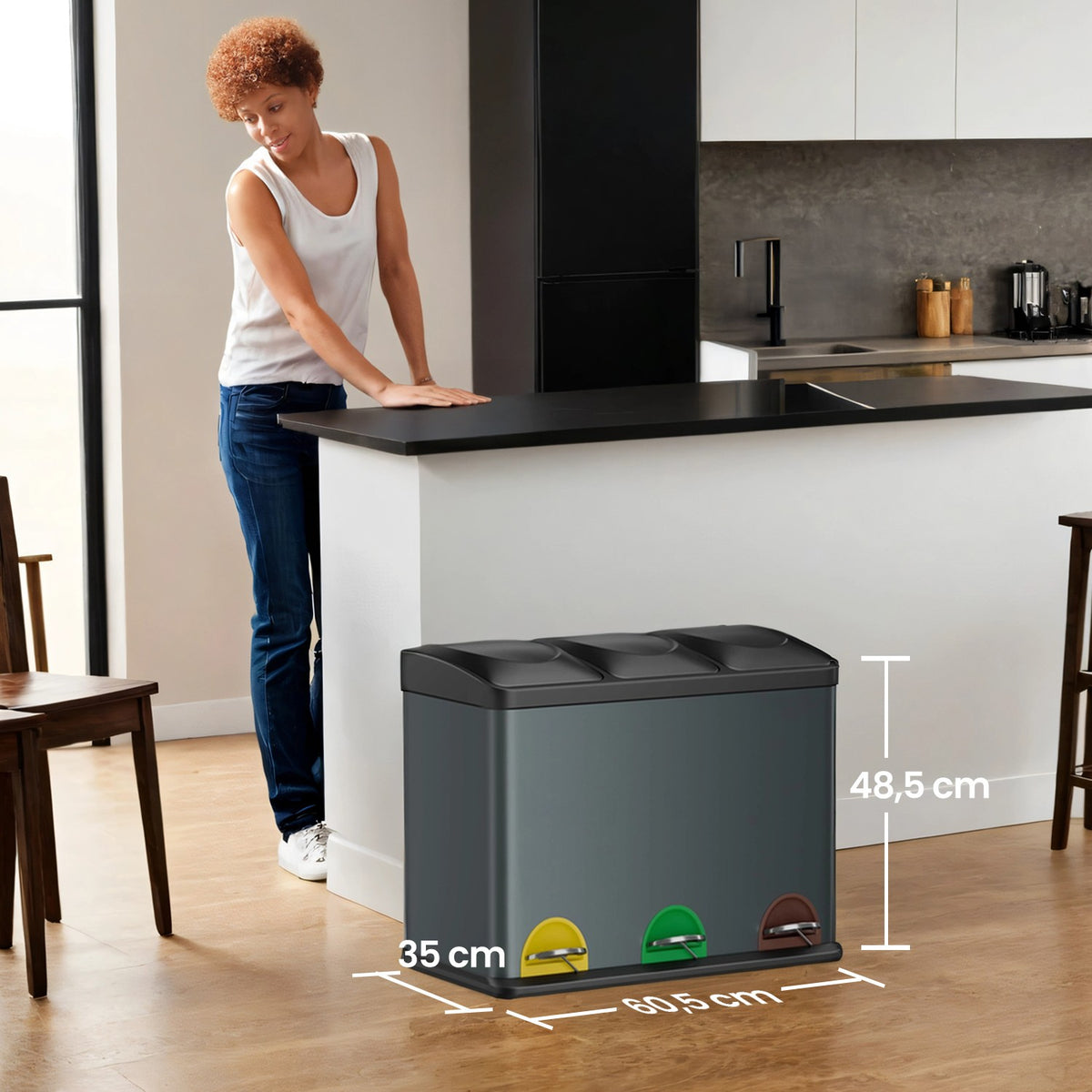 Prullenbak 3 compartimenten, afvalscheidingssysteem keuken, afvalbak 5 cm - LTBB3545G