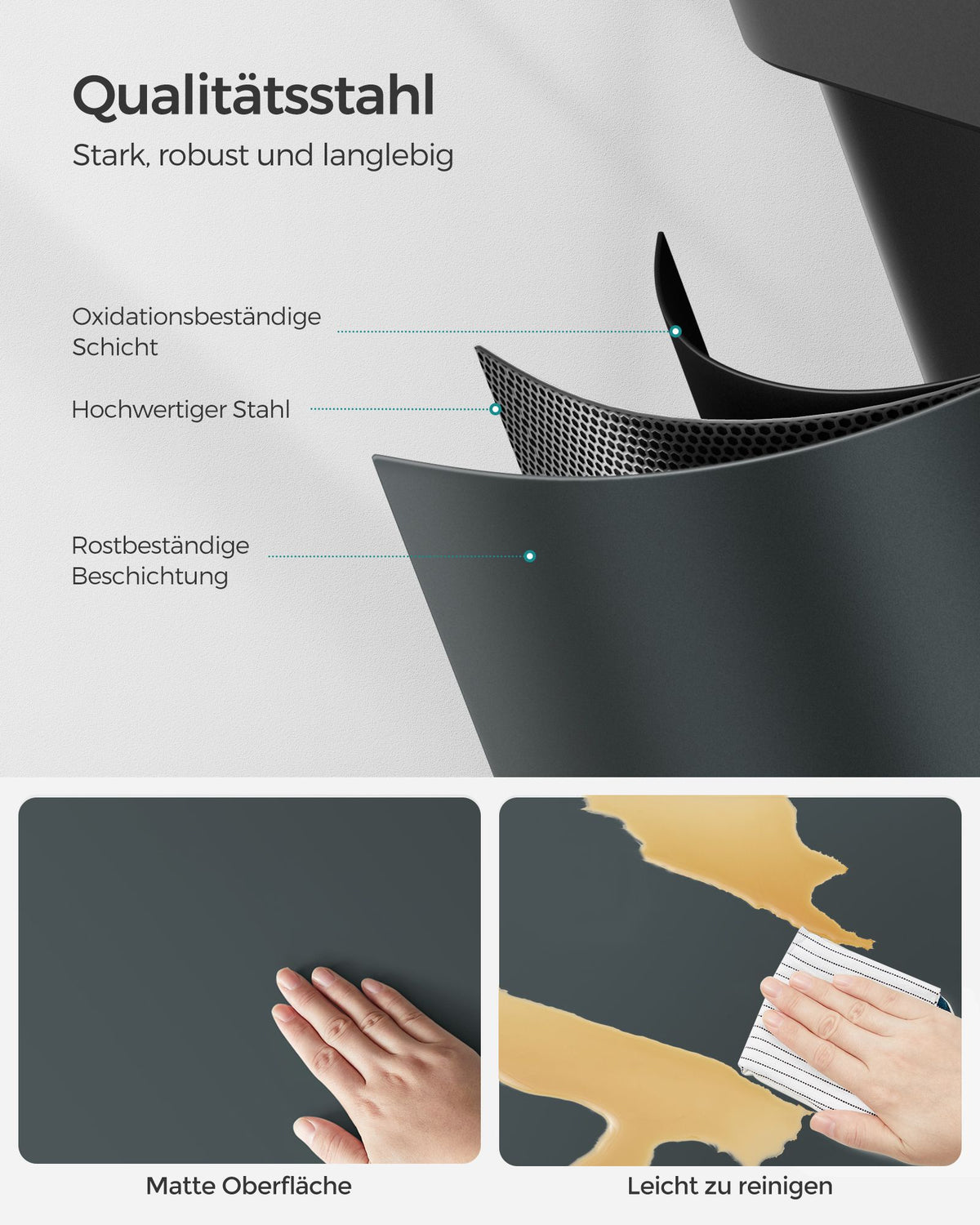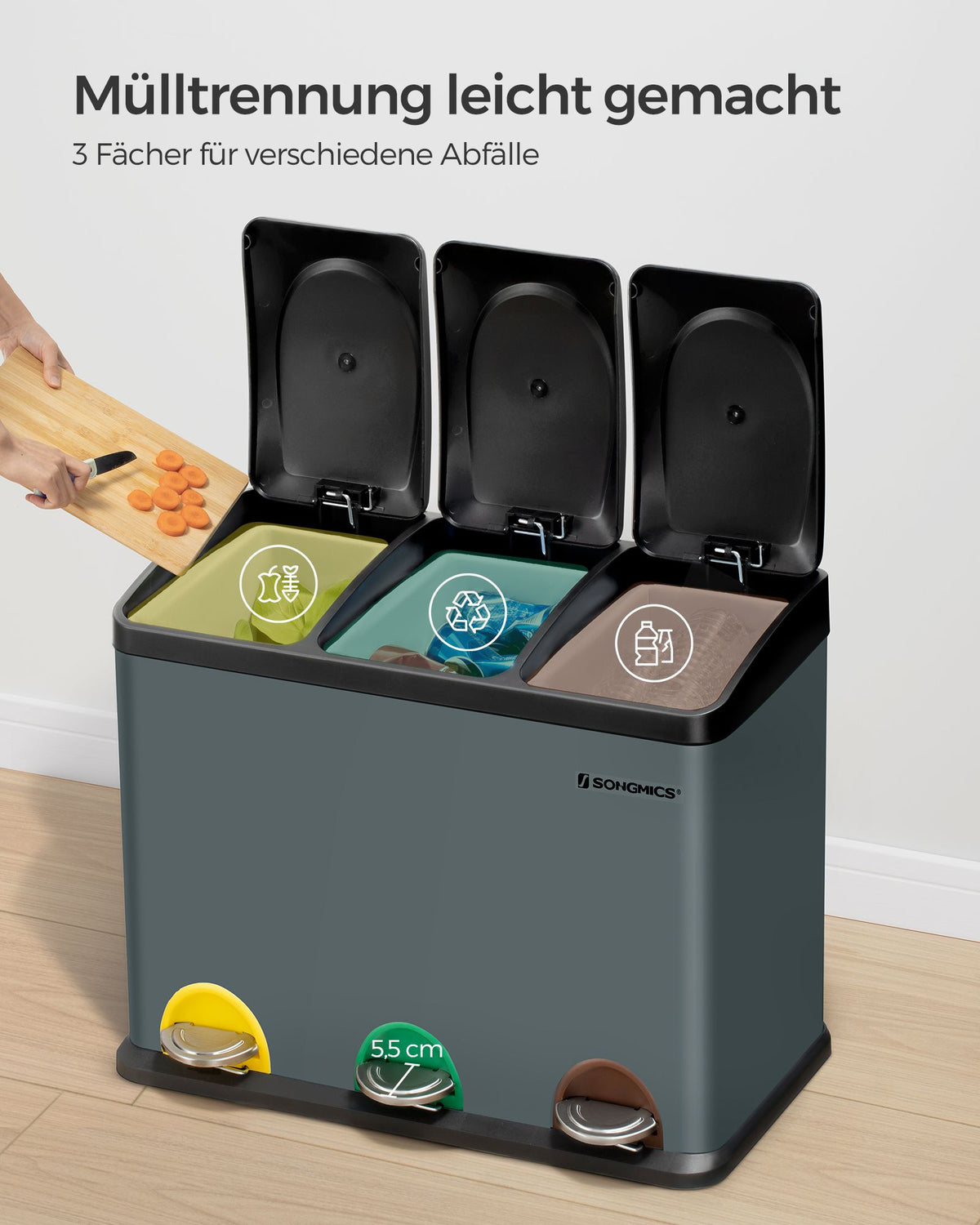 Prullenbak 3 x 15 liter met deksel en binnenemmer rookgrijs-zwart 5 cm