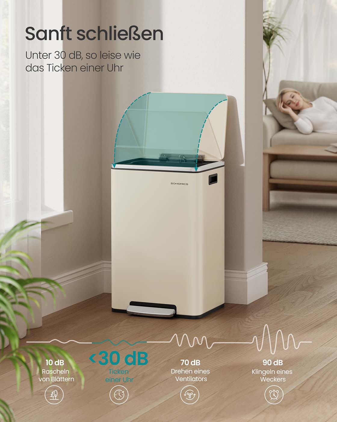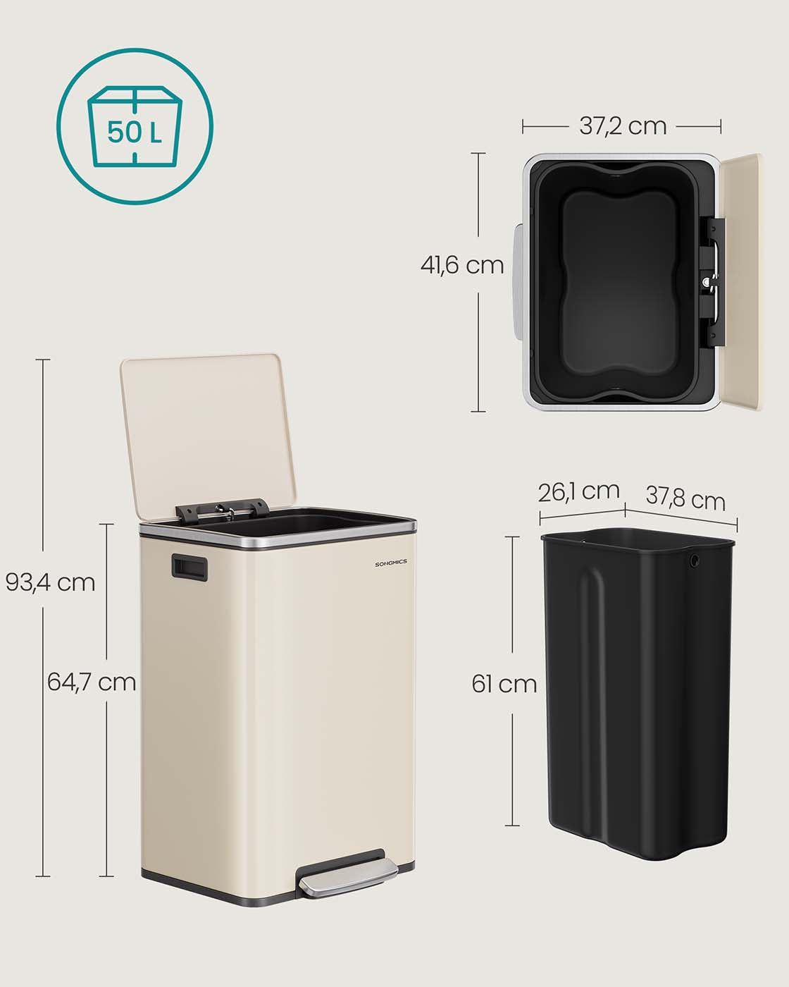 Prullenbak 50 L met deksel en handgrepen crèmekleurig 7 cm