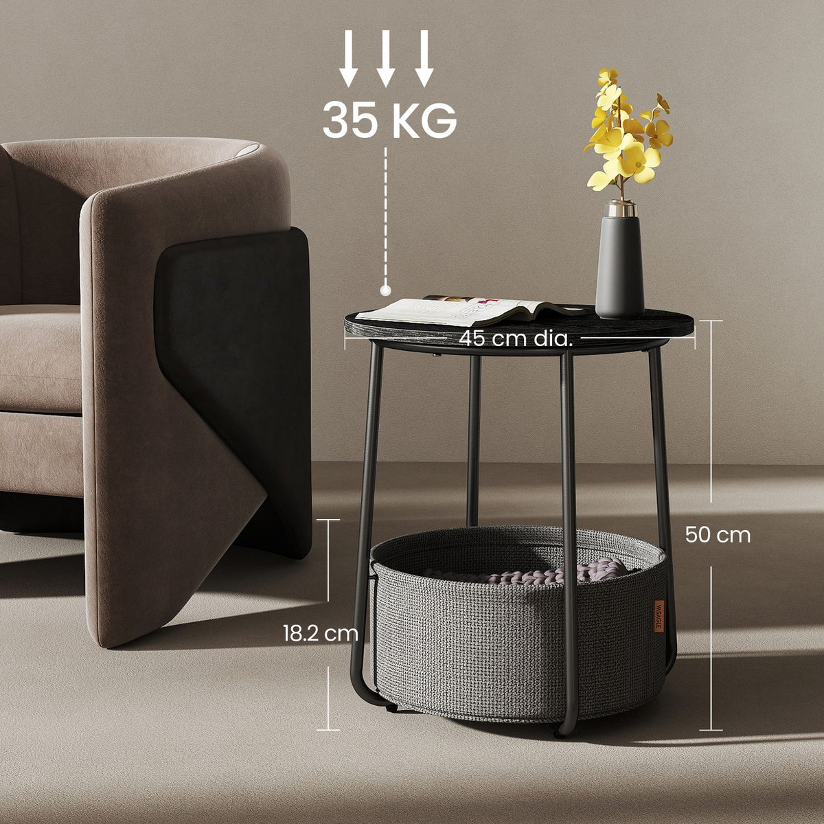 Ronde bijzettafel, kleine tafel, kleine salontafel 45 cm - LETB35223B01