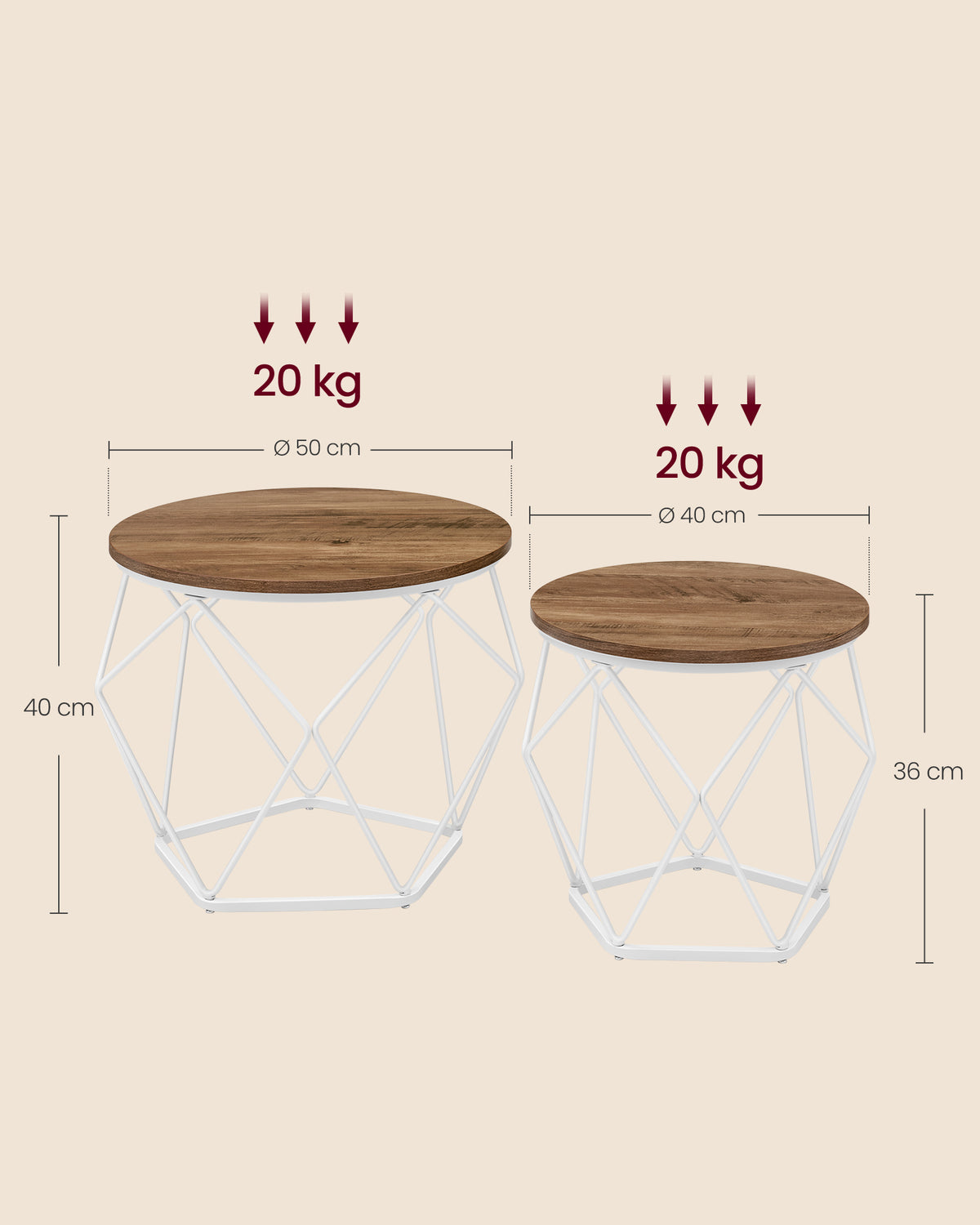 Salontafelset van 2 met afneembaar tafelblad honingbruin-wolkwit 50 x 40 cm