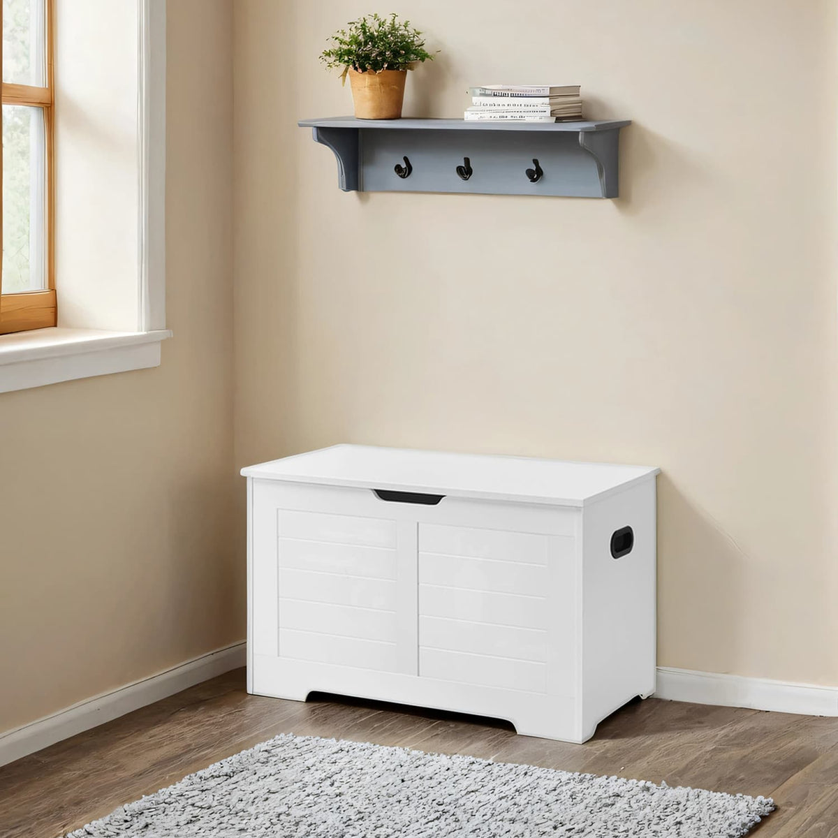 Schoenenbank, bank met opbergruimte, kist met 2 veiligheidsscharnieren 40 x 100 x 46 cm - LSBB35063T14