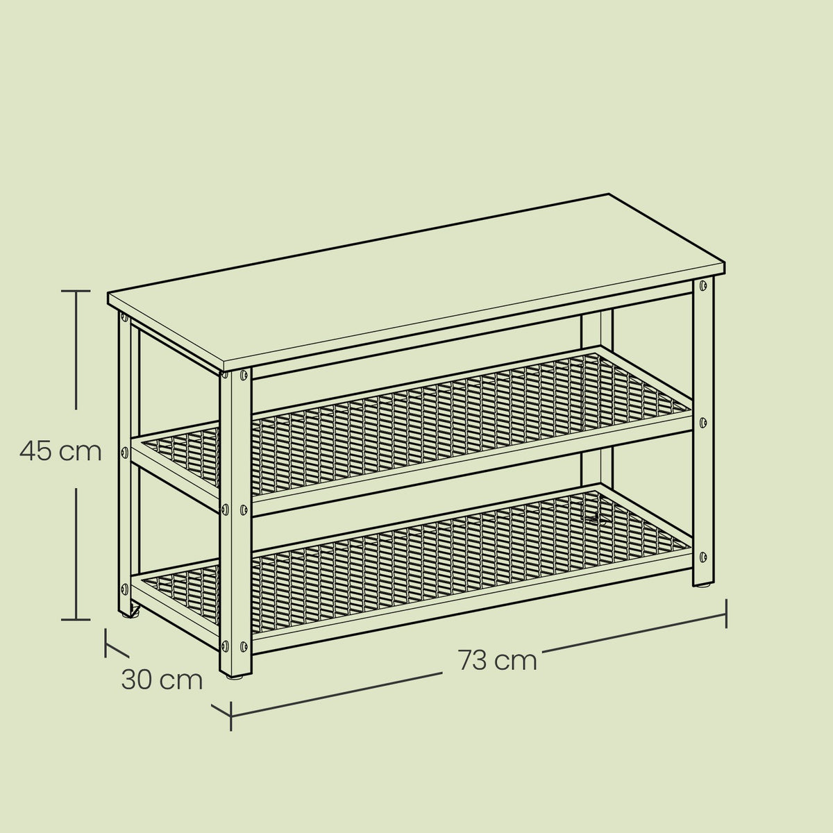 Schoenenbank met 2 gaasplanken, schoenenrek, 30 x 73 x 45 cm - LBSB3573MB