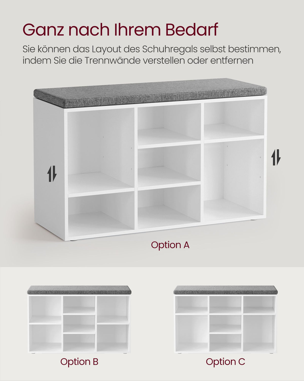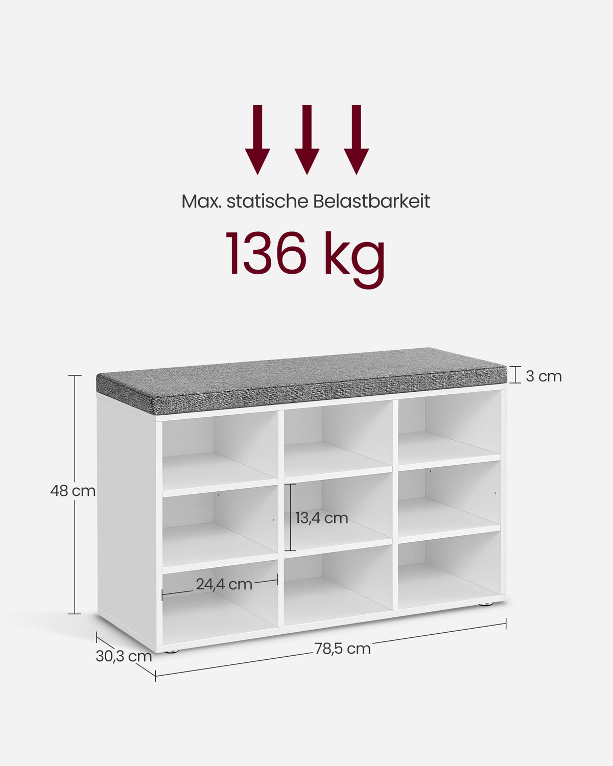 Schoenenbankkussen met 9 vakken 5 x 48 cm