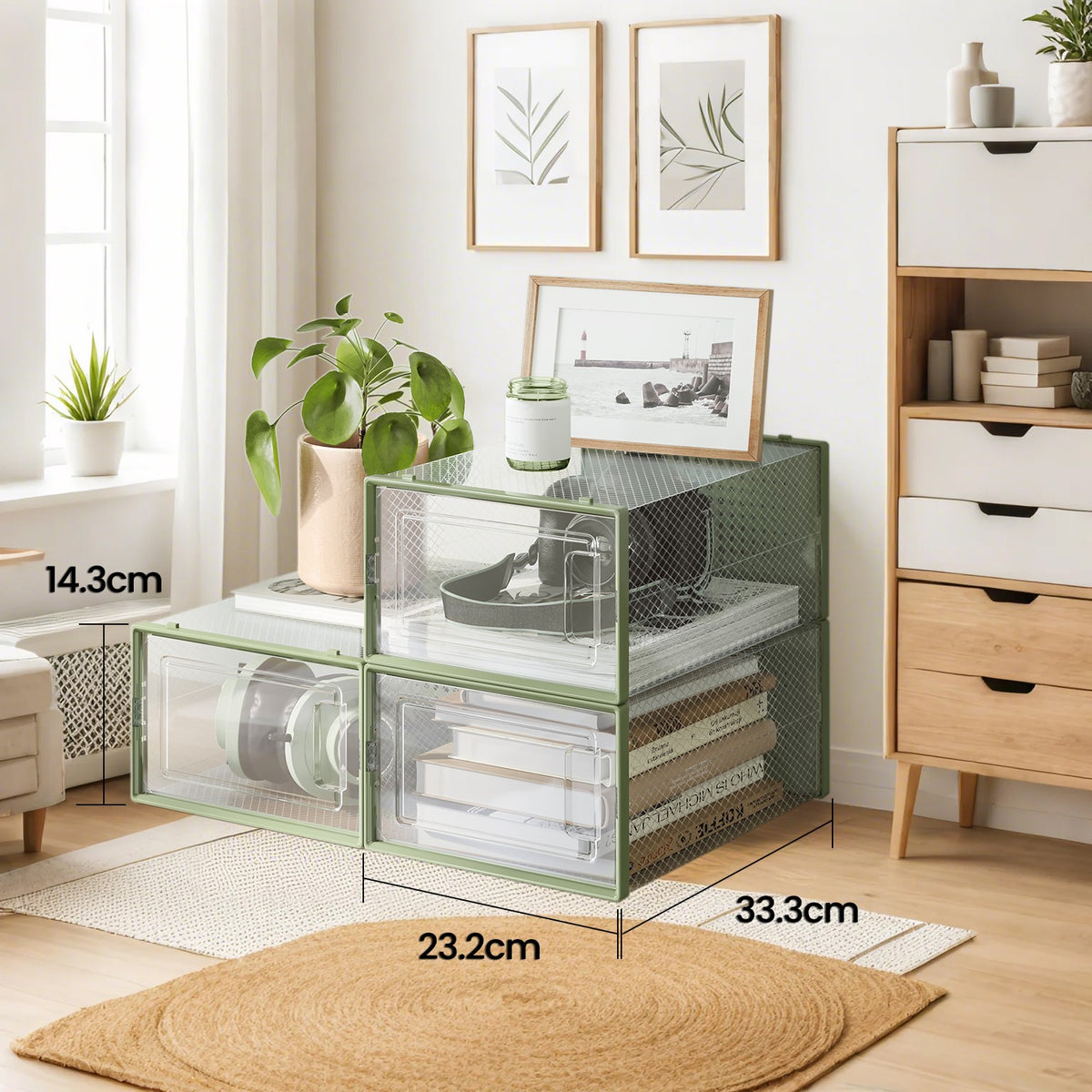 Schoenendoosset van 12, schoenenorganizer van kunststof, voor schoenen tot maat 44 3 cm