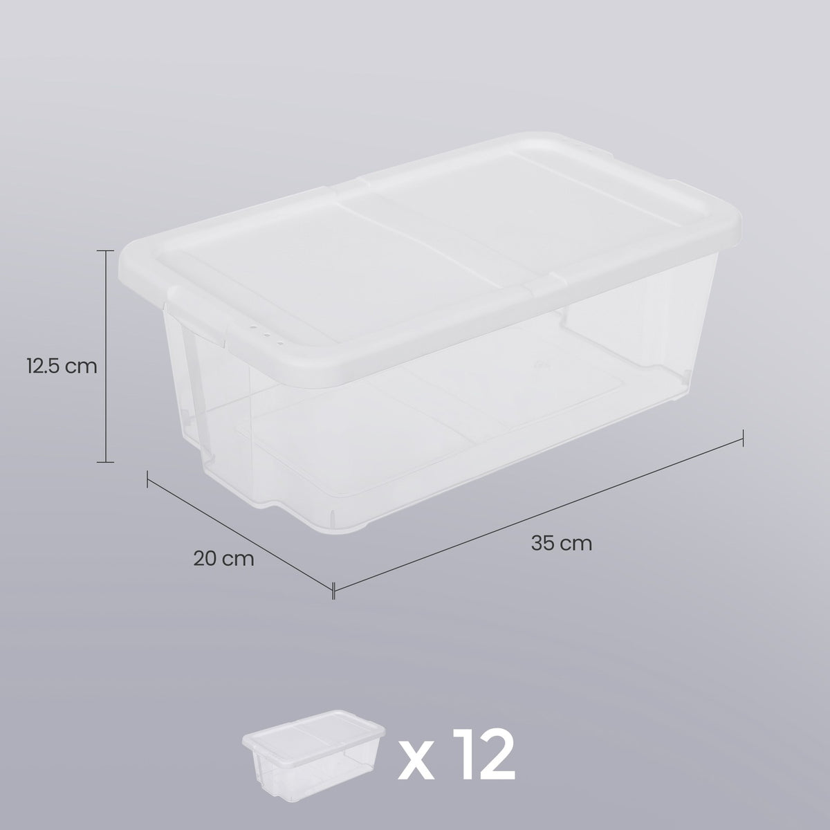 Schoenendozen set van 12, met deksel, schoenenorganizer stapelbaar 35 x 20 x 12,5 cm