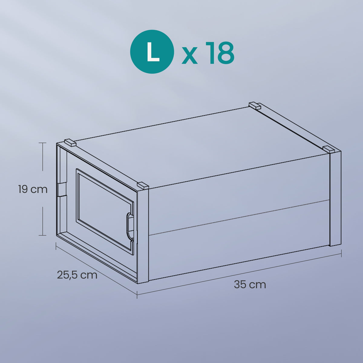 Schoenendozen, set van 18, kunststof schoenenorganizer 35 x 25 x 18,5 cm