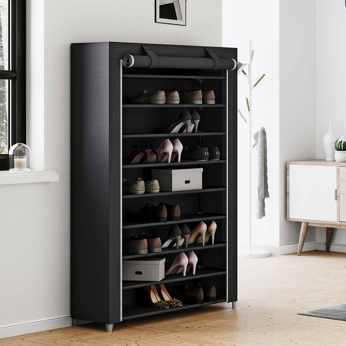 Schoenenkast met roldeur zwart 100 x 28 x 162 cm
