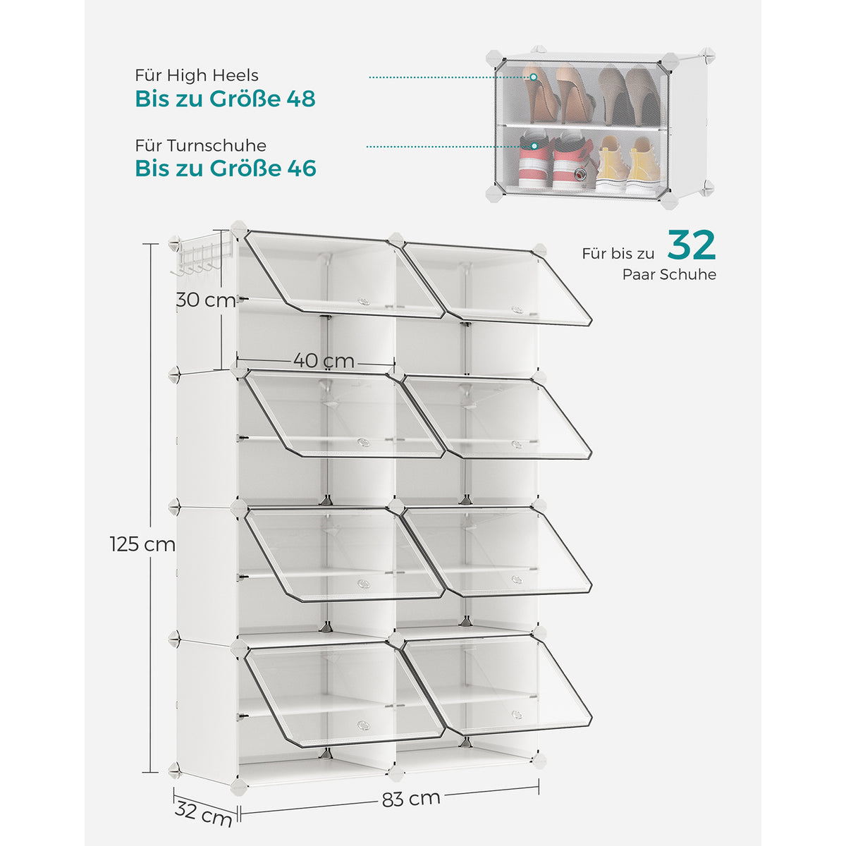 Schoenenrek met 8 vakken wit 30 x 40 x 30 cm