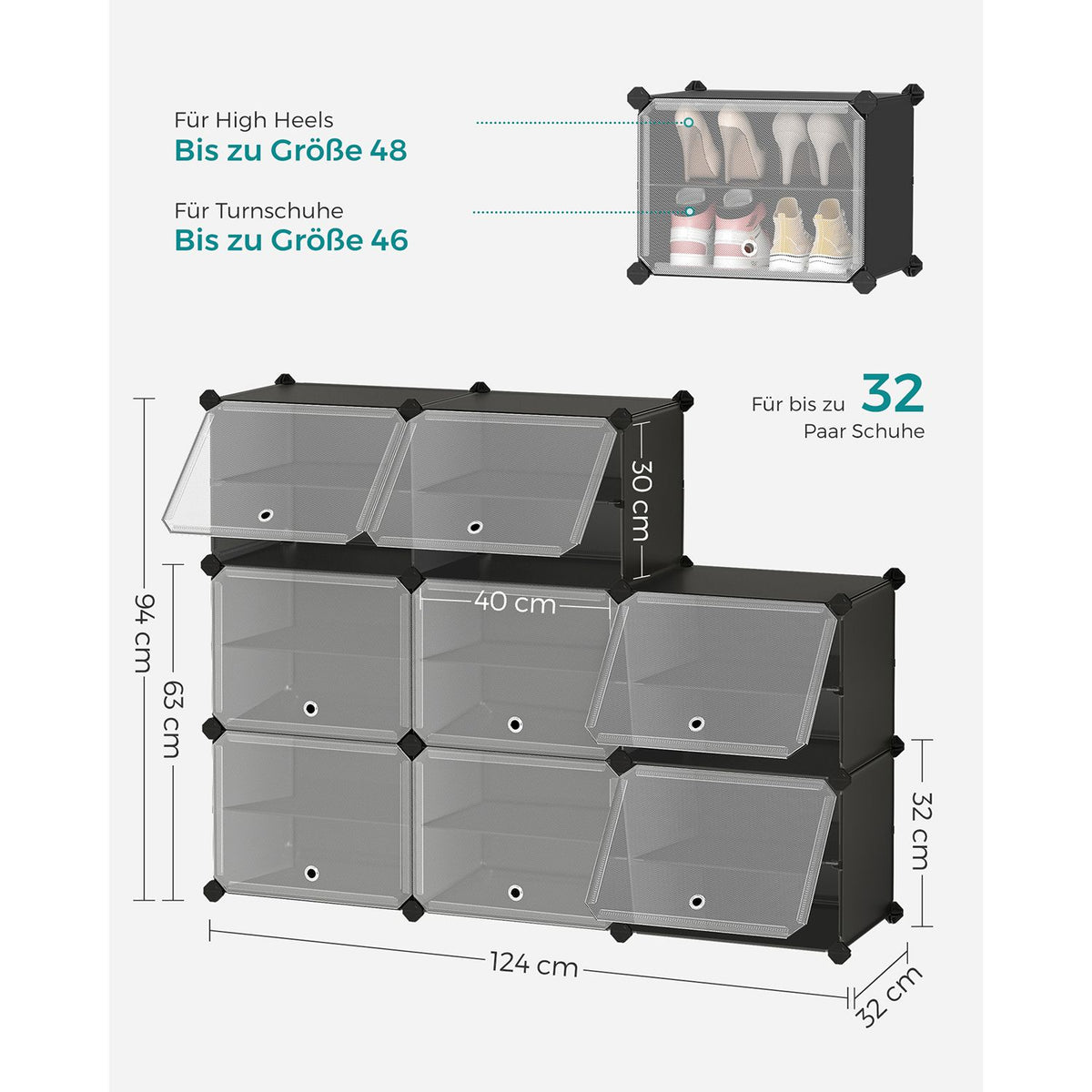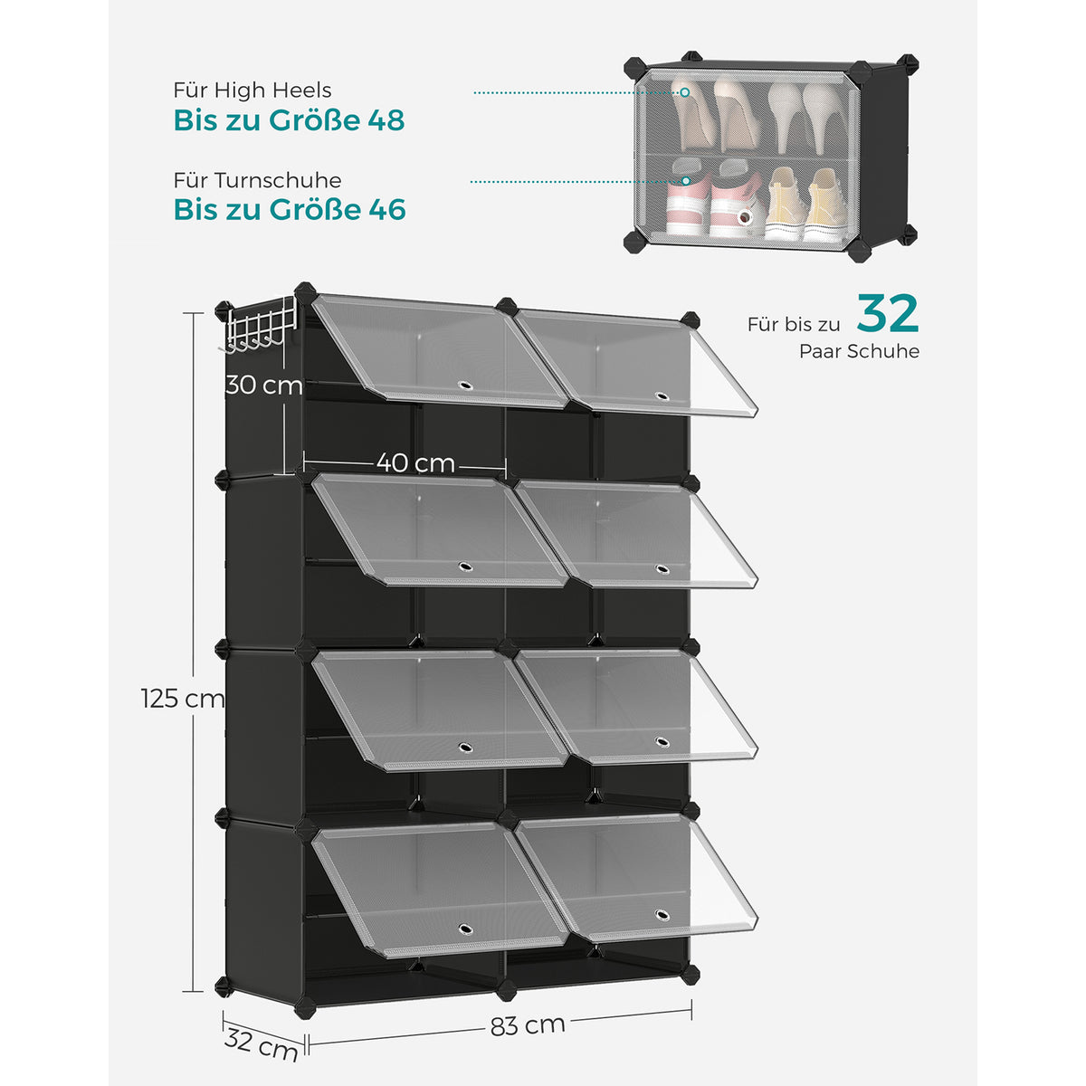 Schoenenrek met 8 vakken zwart 30 x 40 x 30 cm