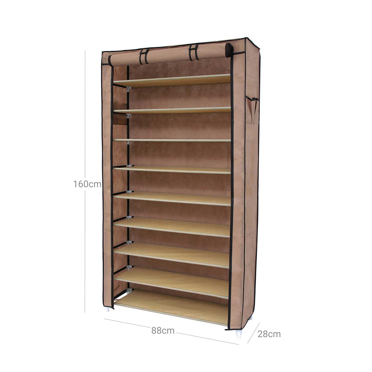 Schoenenrek met hoes lichtbruin 88 x 28 x 160 cm