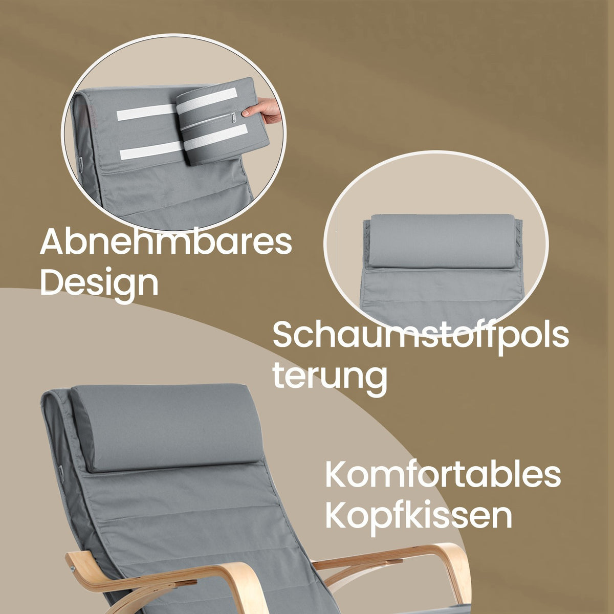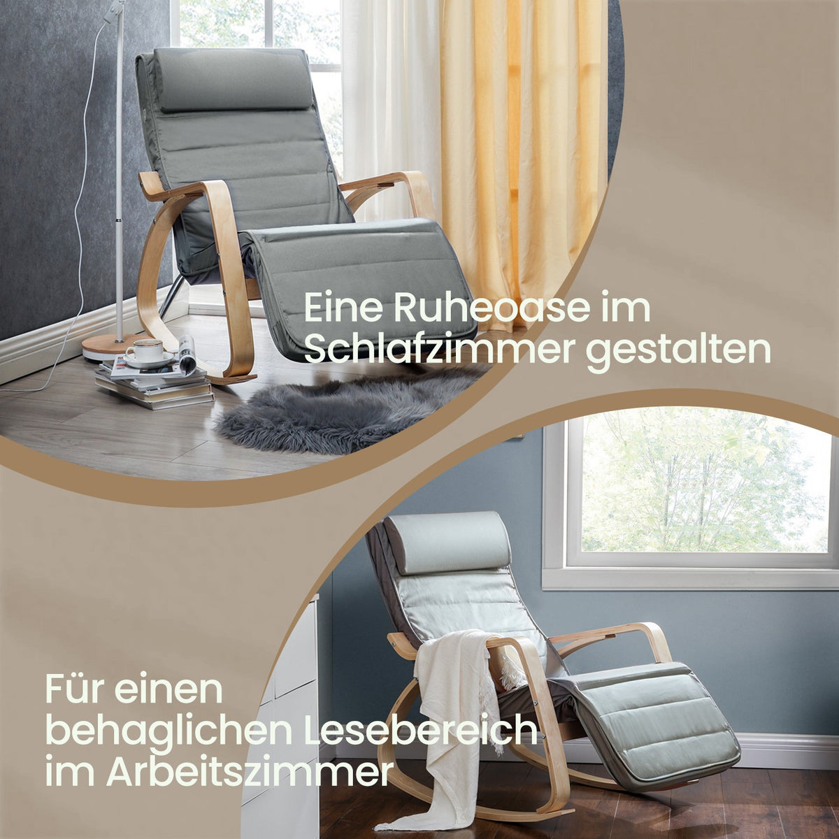 Schommelstoel met 5-voudig verstelbare voetensteun, schommelstoel met armleuningen van berkenhout, voor de woonkamer 5 x 67 x 84 cm - LYYB3510G