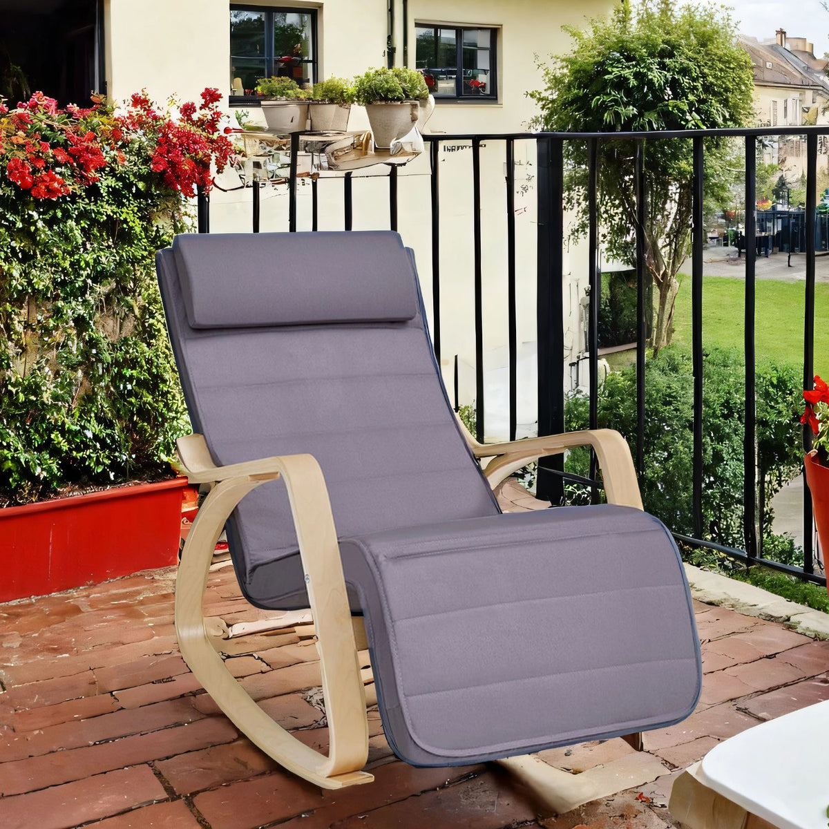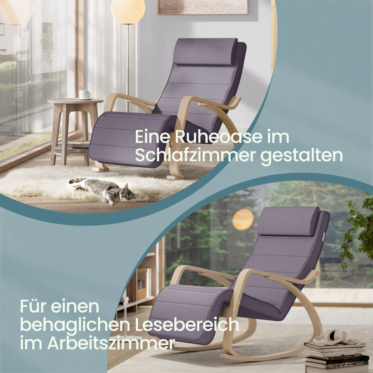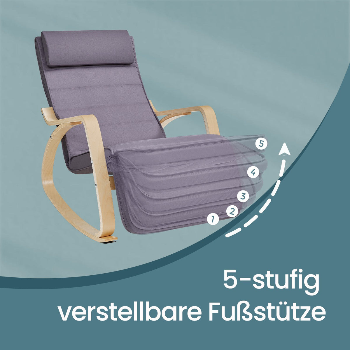 Schommelstoel met 5-voudig verstelbare voetensteun, schommelstoel met armleuningen van berkenhout, voor de woonkamer 67 x 115 x 91 cm - LYYB35010G01