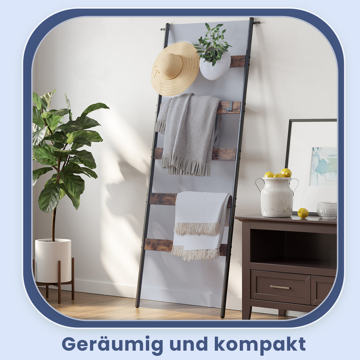 Schuine ladderplank, handdoekhouder, 5 niveaus 65 cm