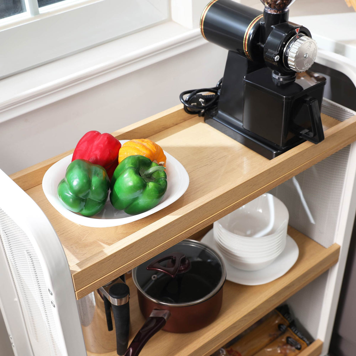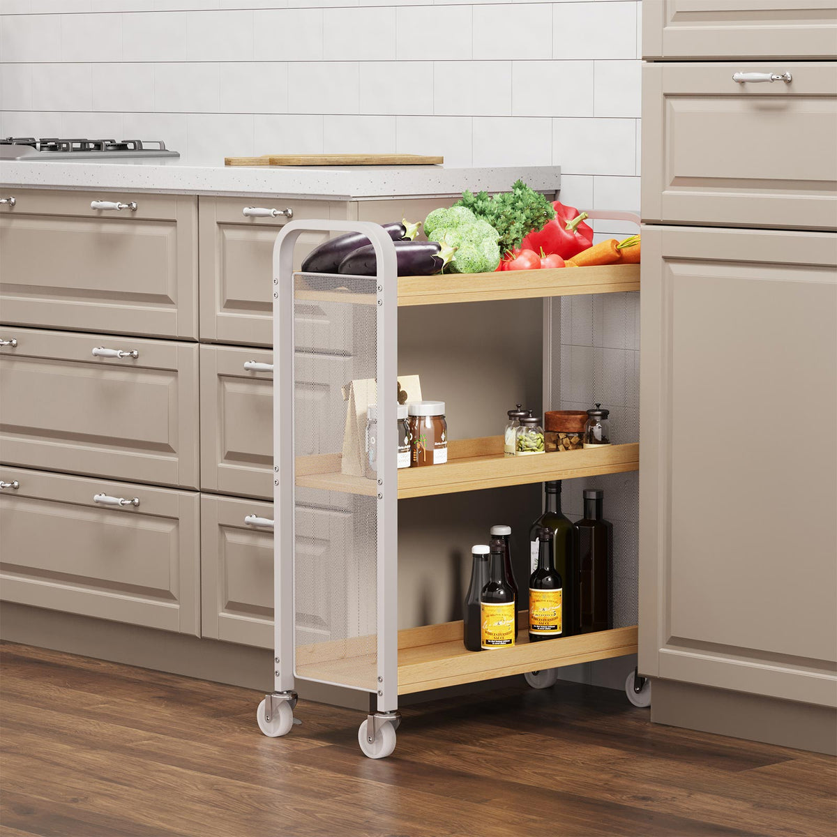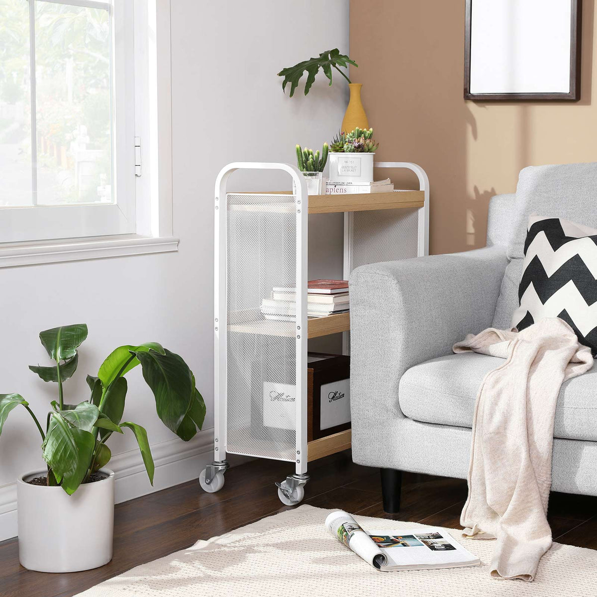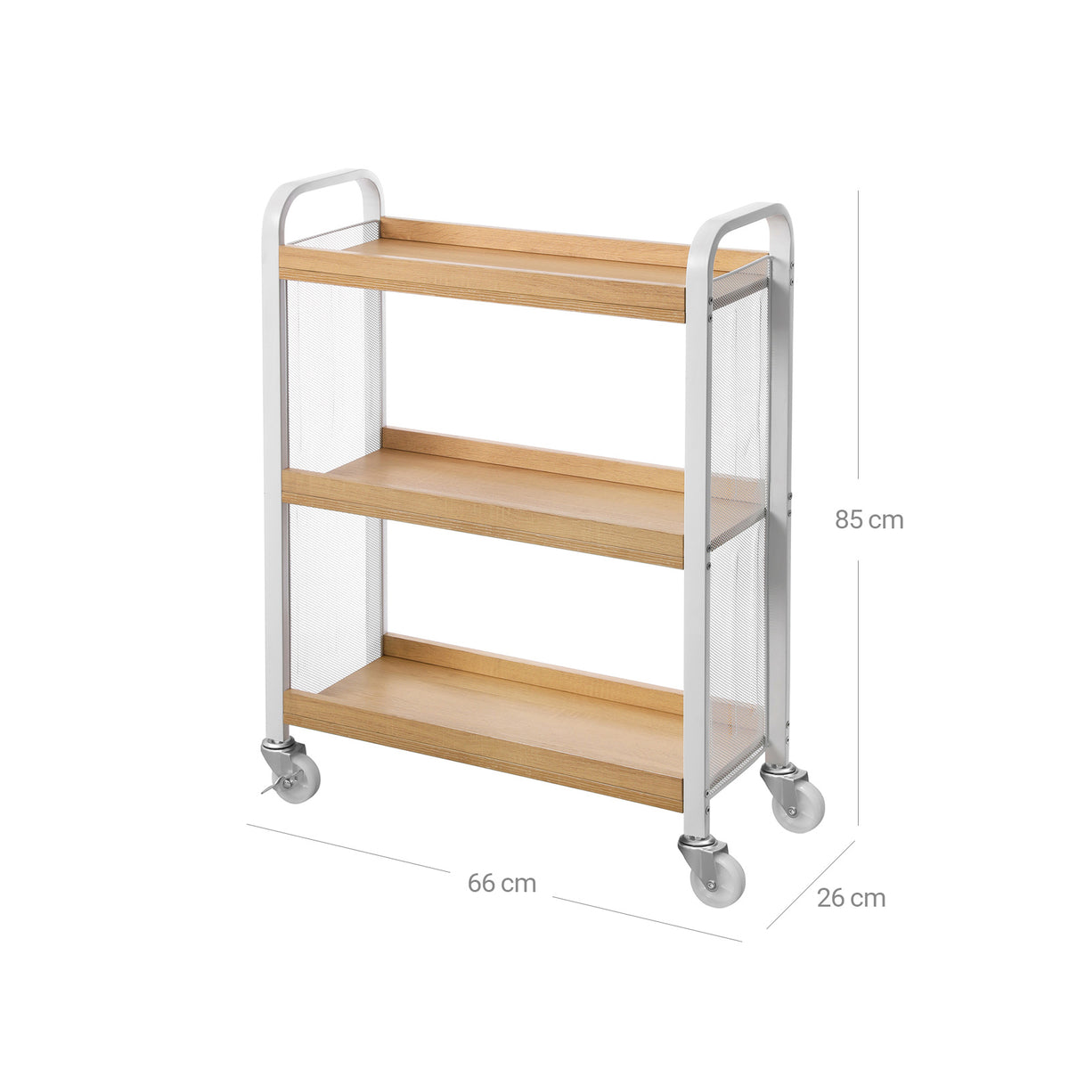 Serveerwagen 3 planken wit-naturel 66 x 26 x 85 cm