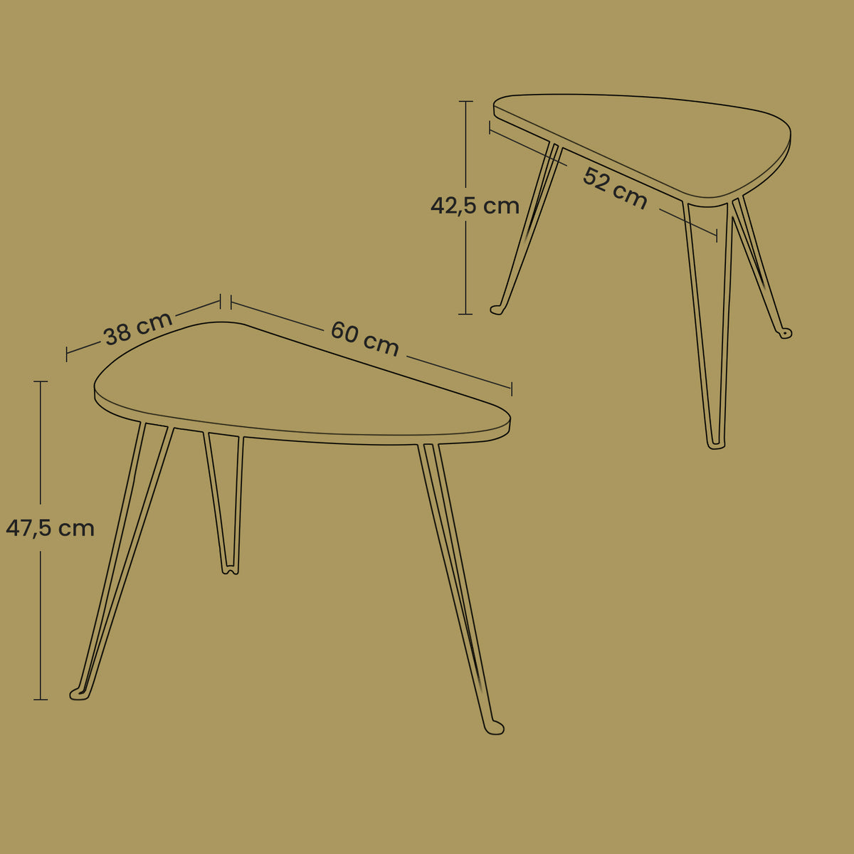 Set van 2 bijzettafels, bijzettafels, salontafels voor de woonkamer, eetkamer, slaapkamer 60 x 38 x 47,5 cm