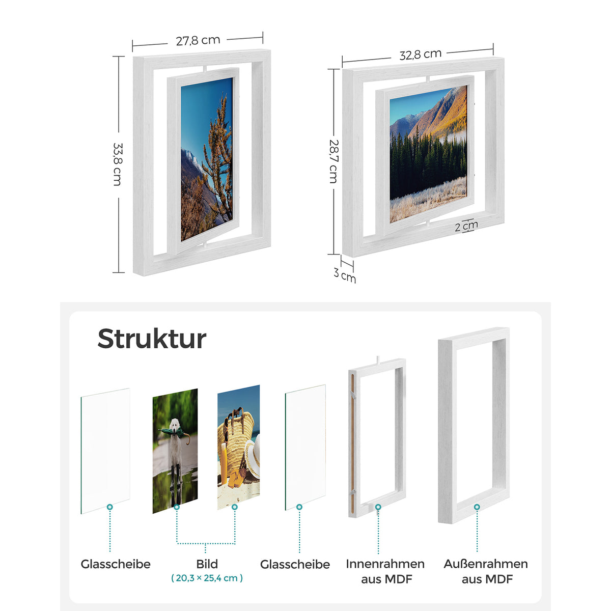 Set van 2 draaibare fotolijsten voor foto's in 20,3 x 25,4 cm (8 x 10 inch)