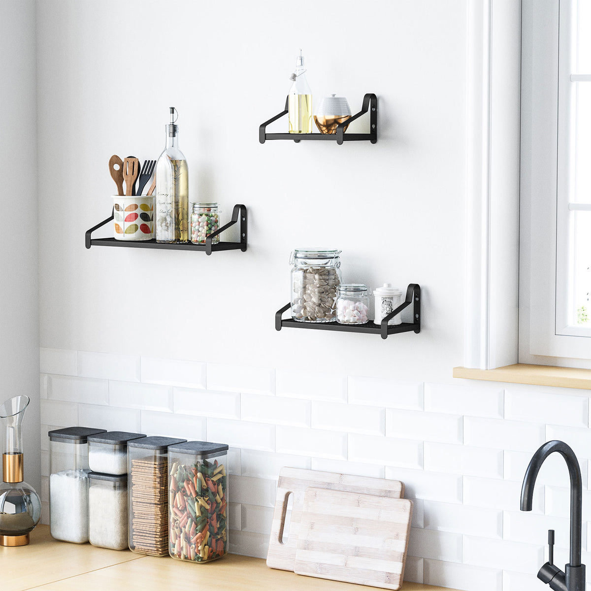 Set van 3 metalen wandplanken 24,5 x 14 x 12 cm