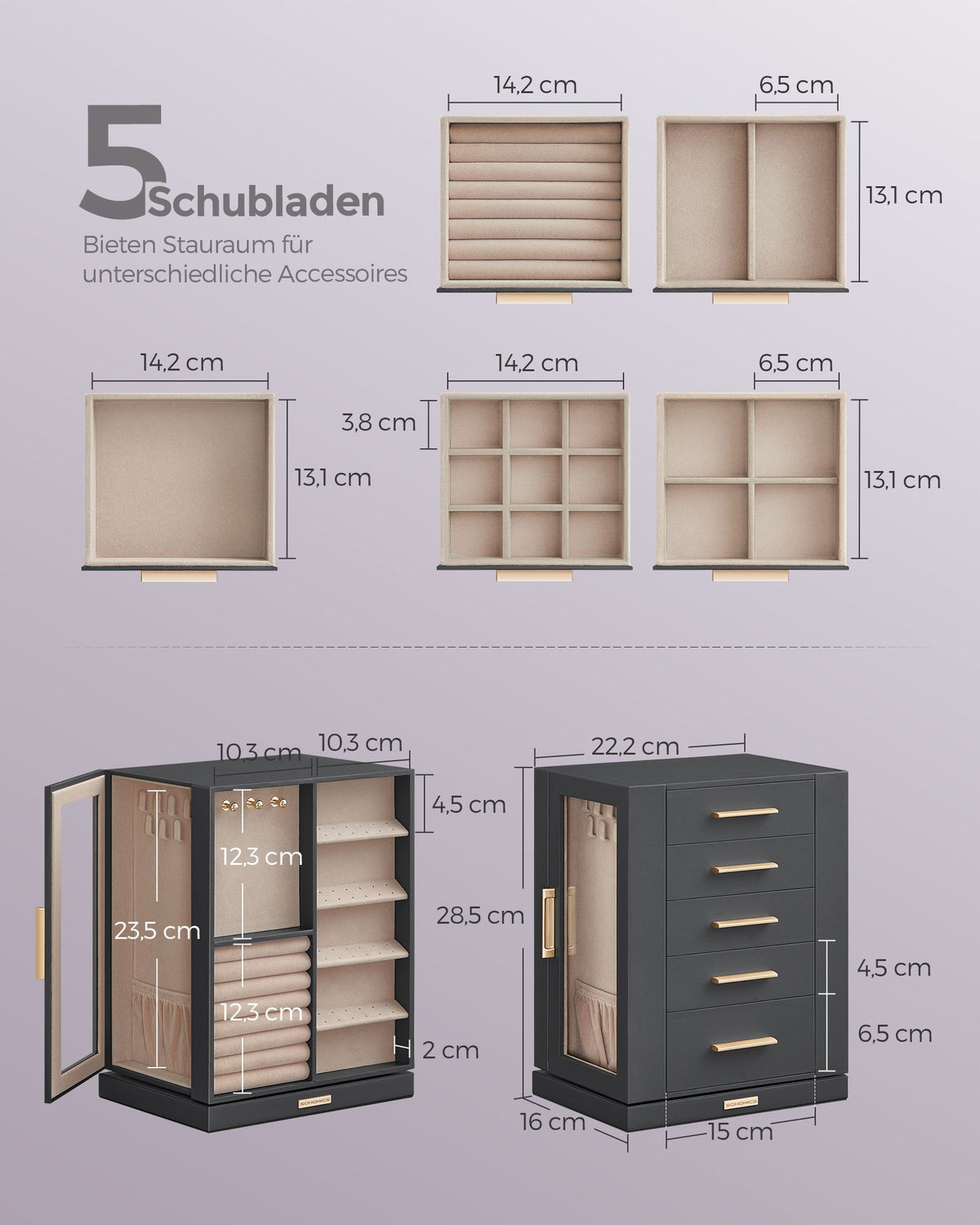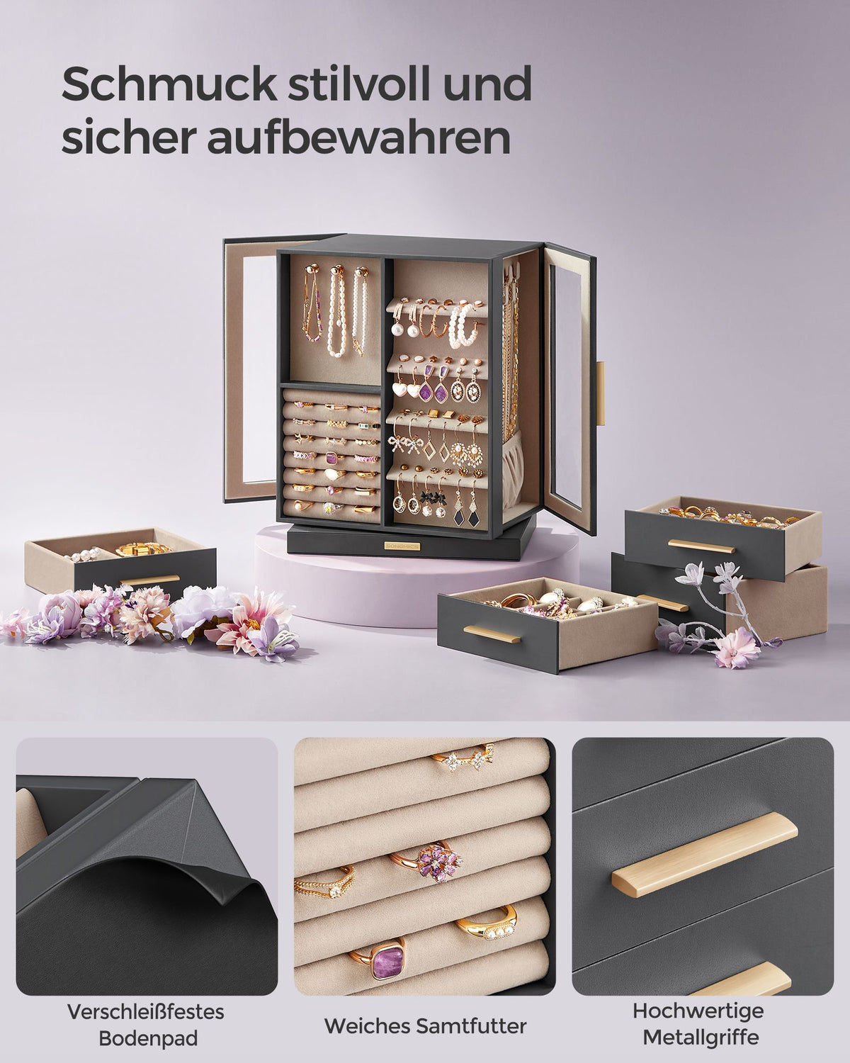 Sieradendoos 360° draaibaar ruim cadeau-idee leigrijs 5 cm