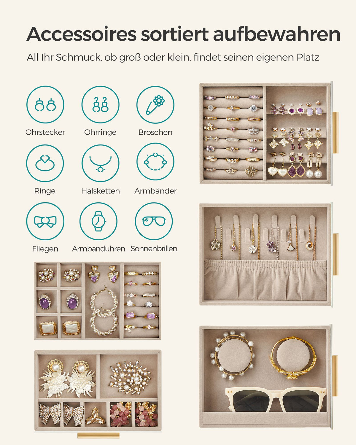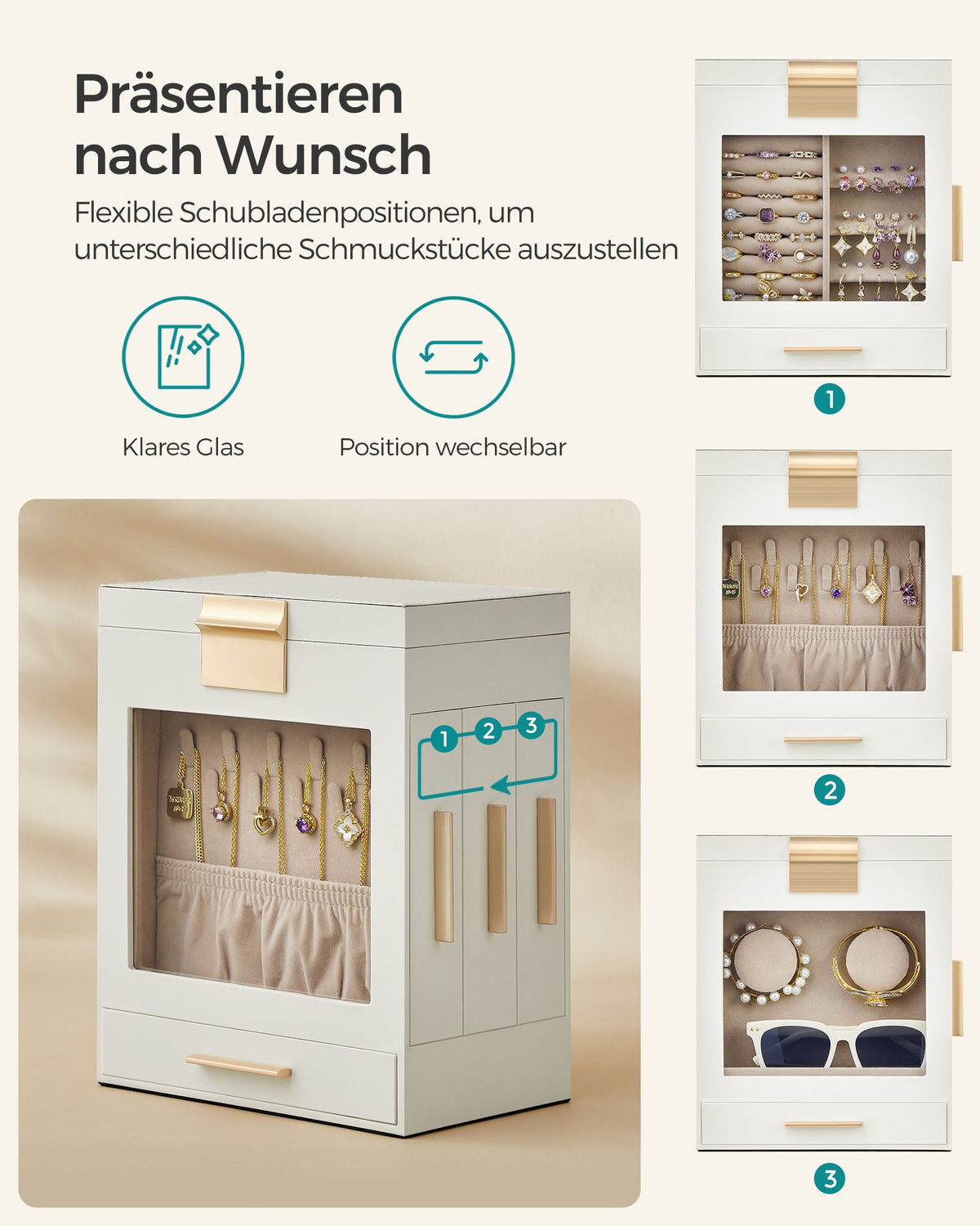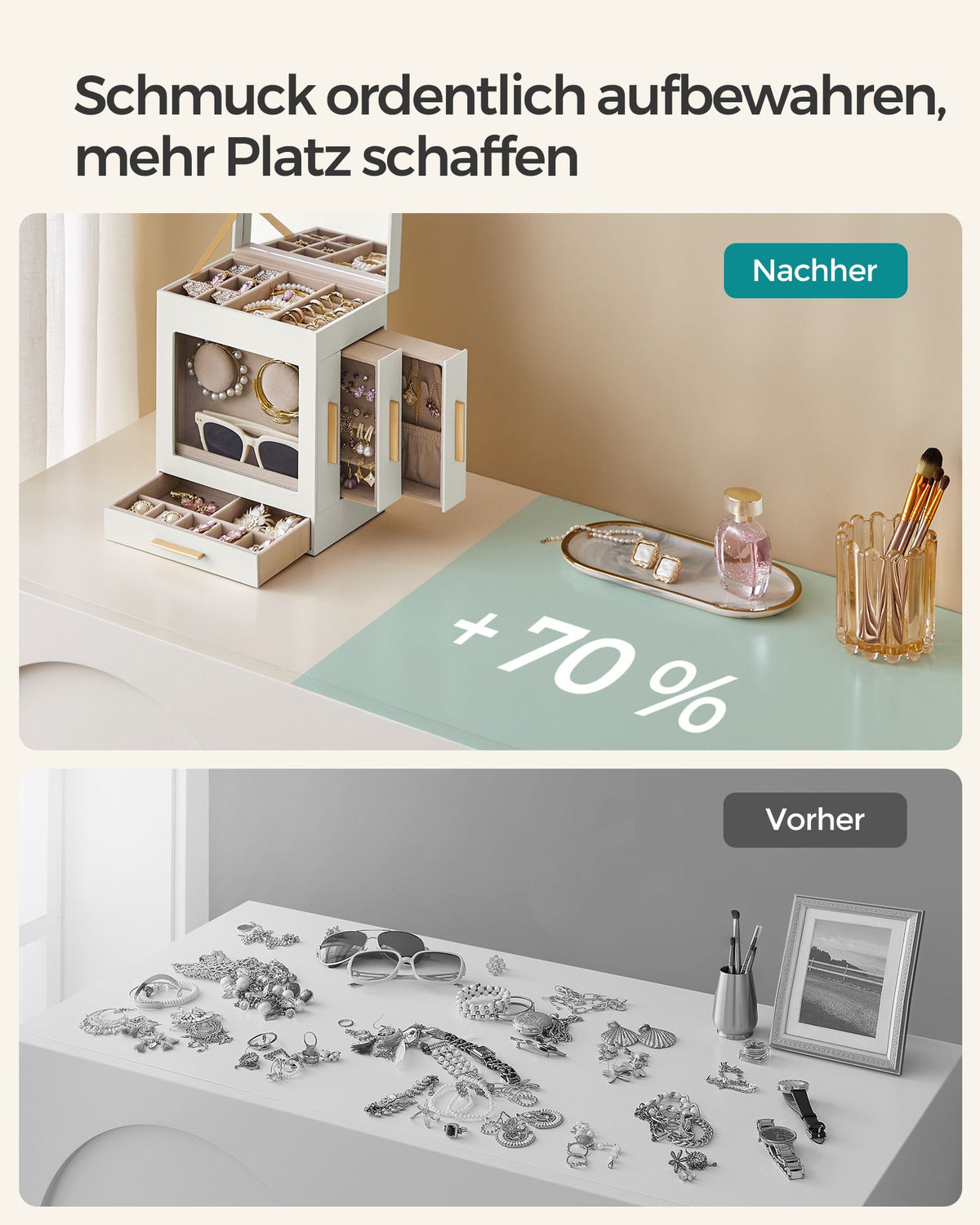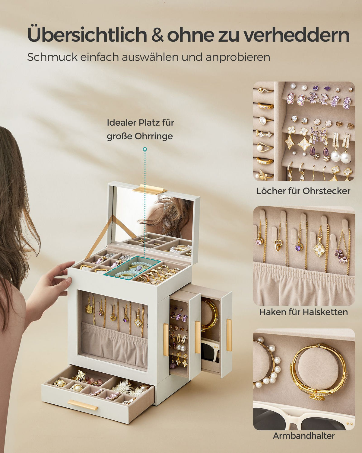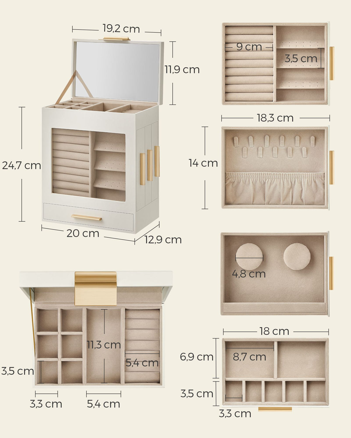 Sieradendoos 5 niveaus grote spiegel wolk wit metallic goud 7 cm - JBC172W01