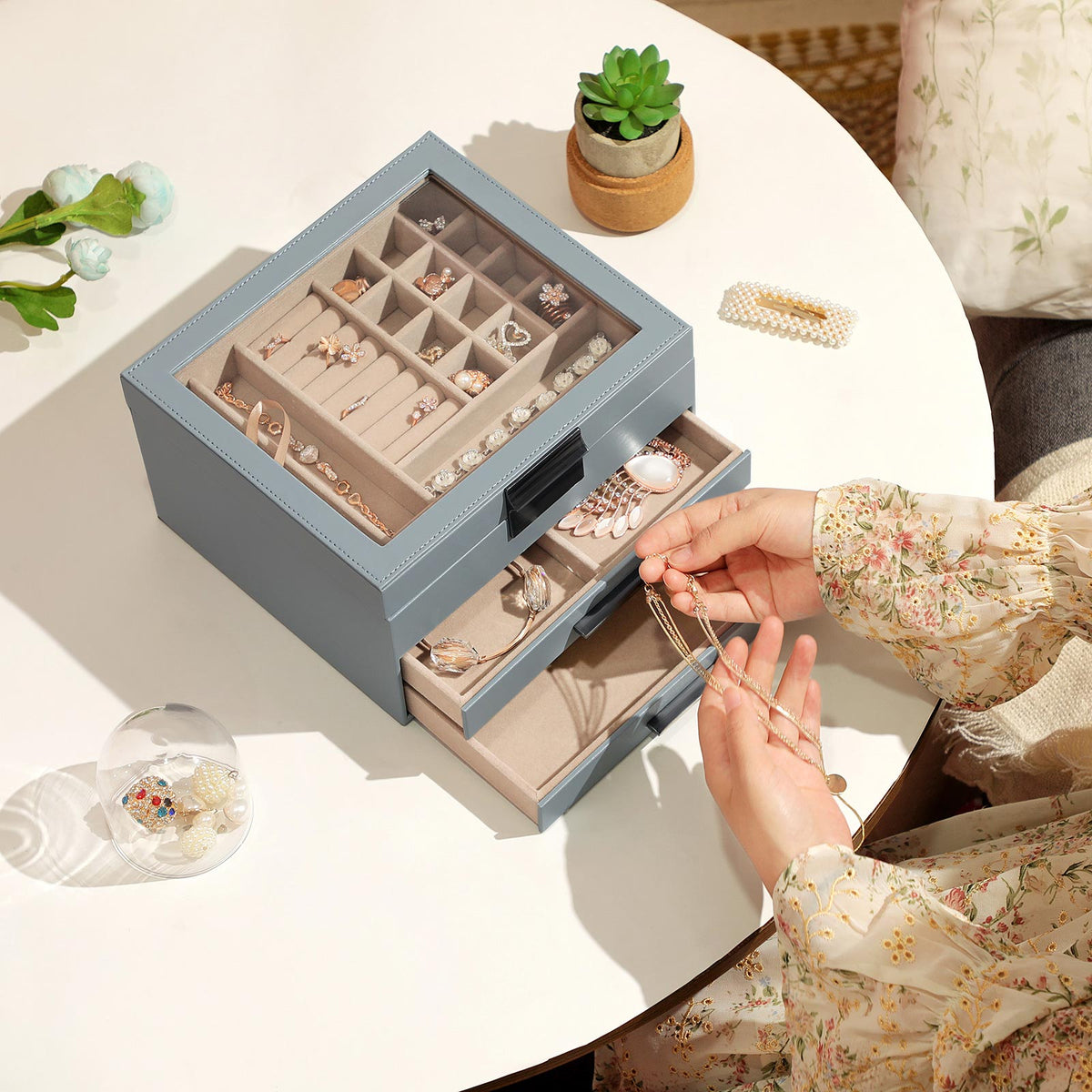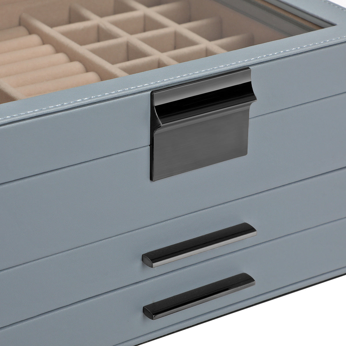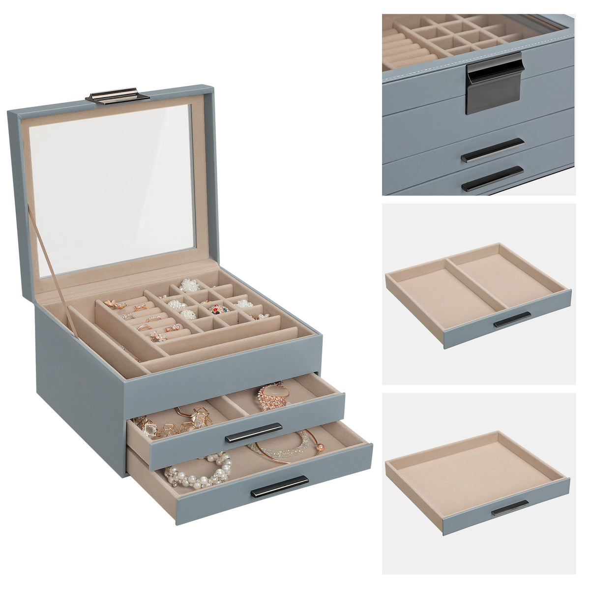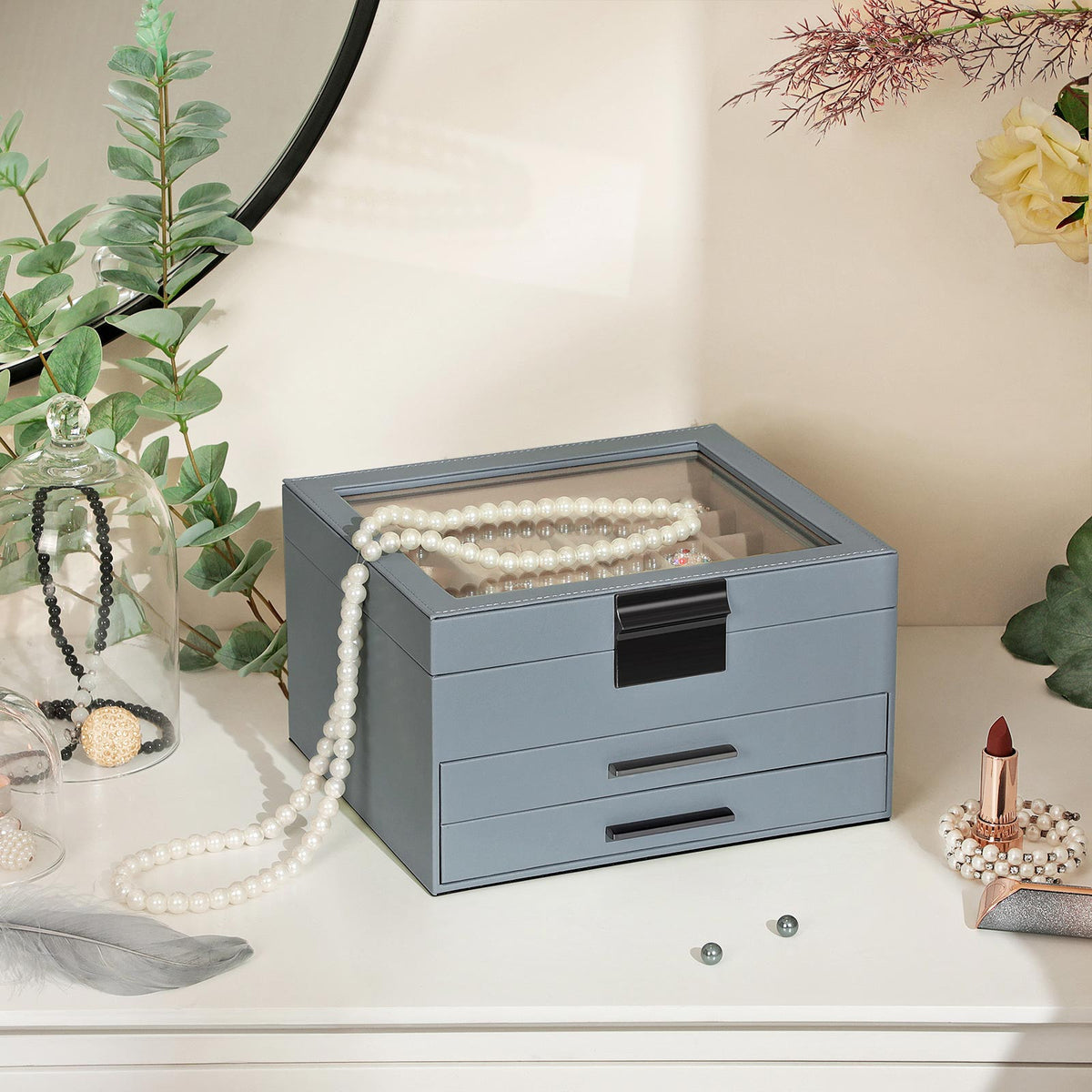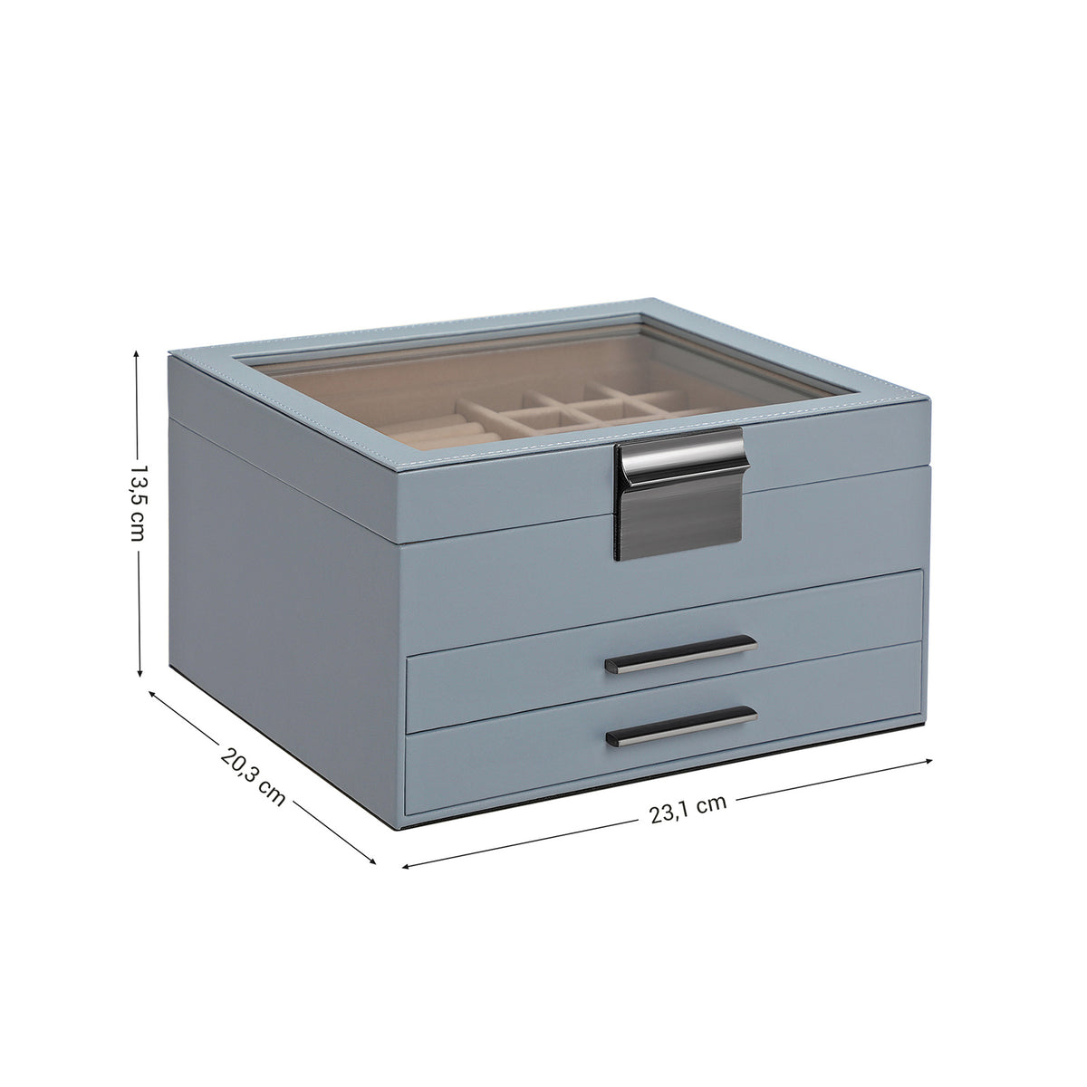 Sieradendoos met glazen deksel rookblauw 23,1 x 20,3 x 13,5 cm