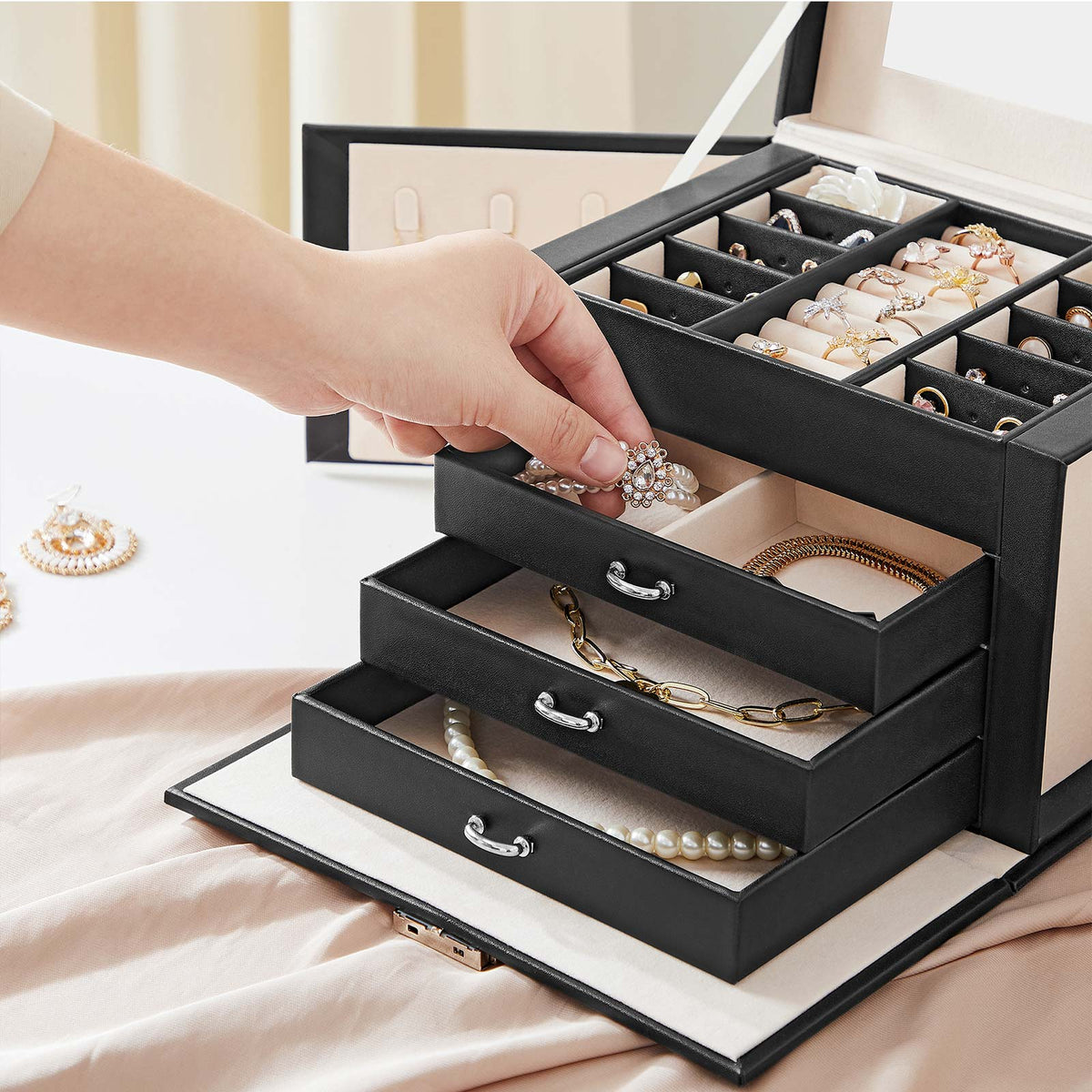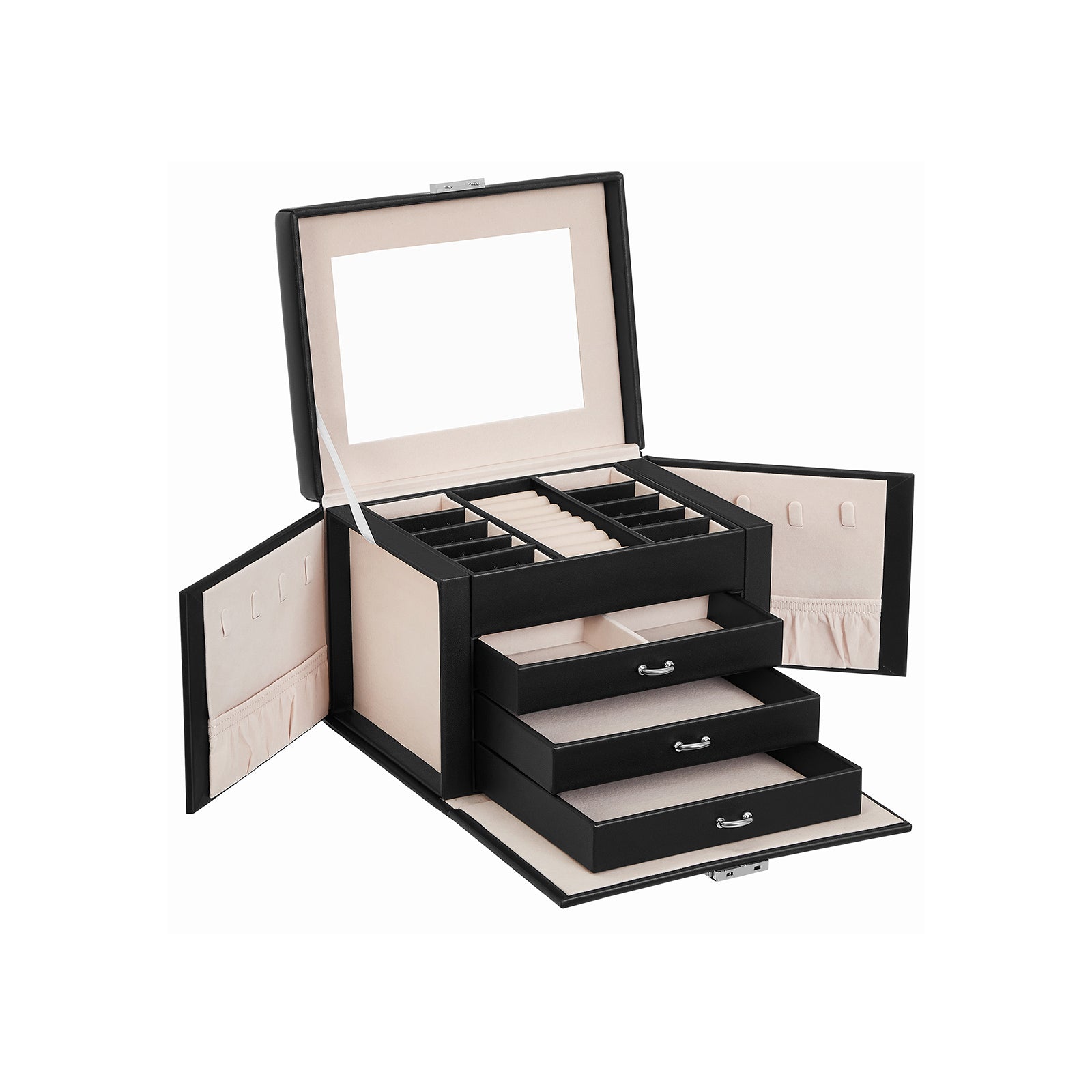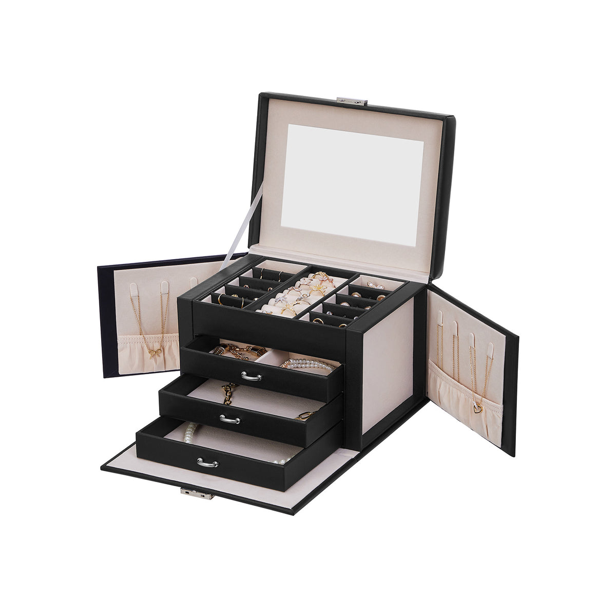 Sieradendoos met lades zwart 22,5 x 17,5 x 16,5 cm - JBC159B01