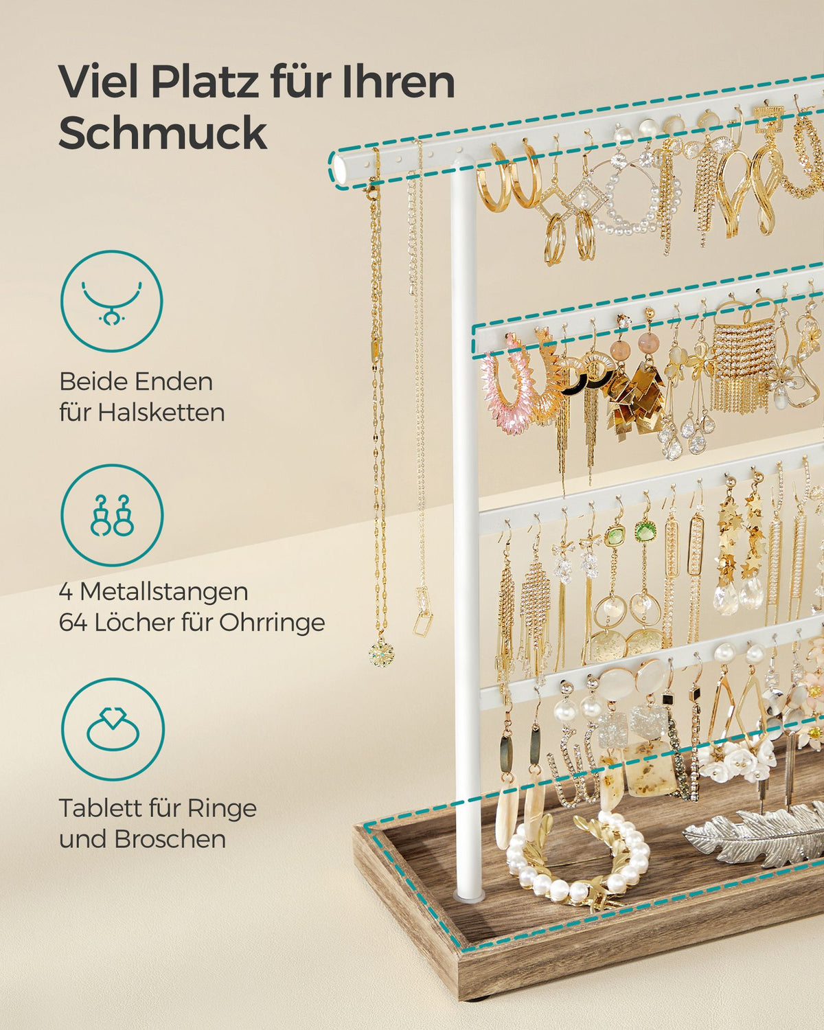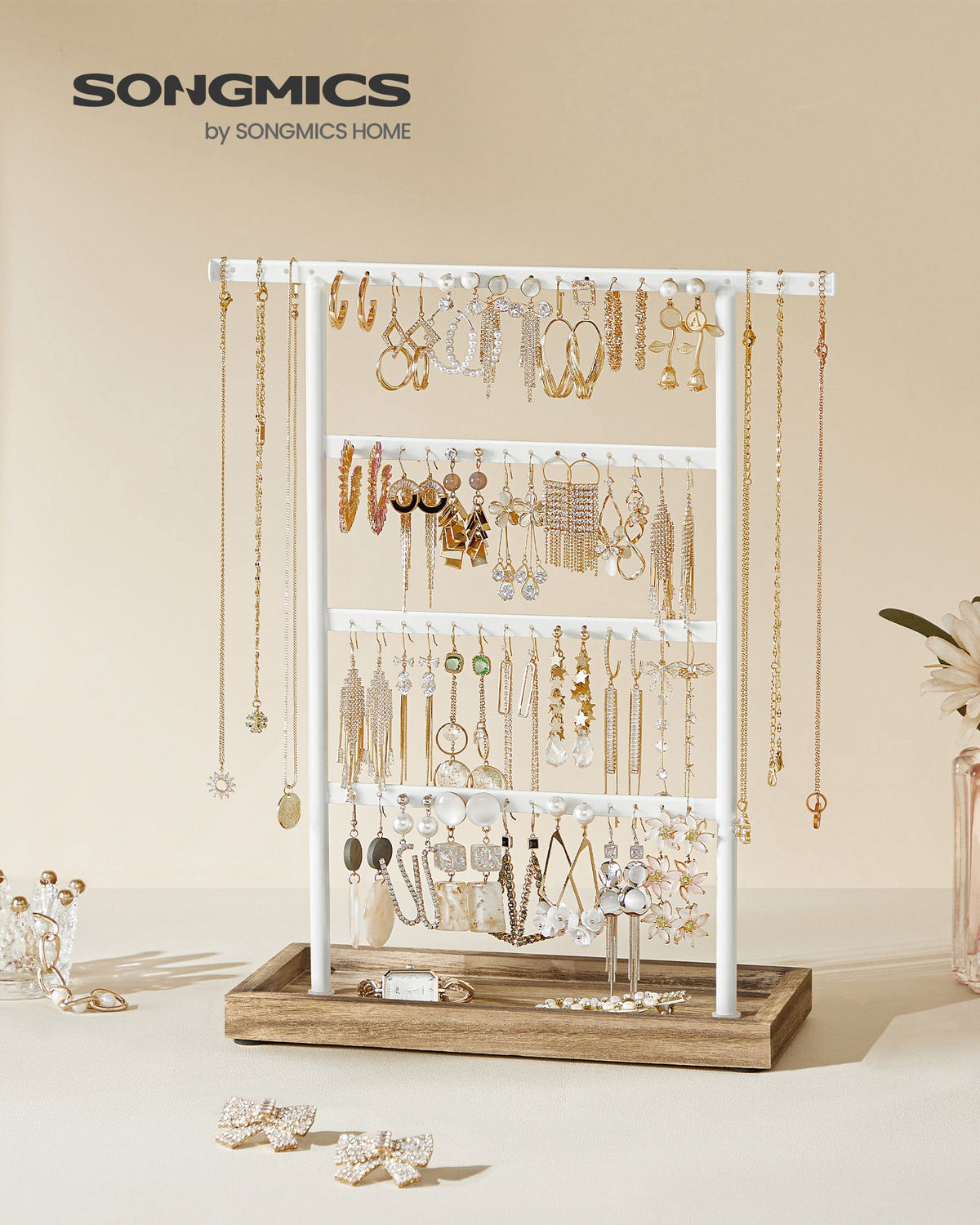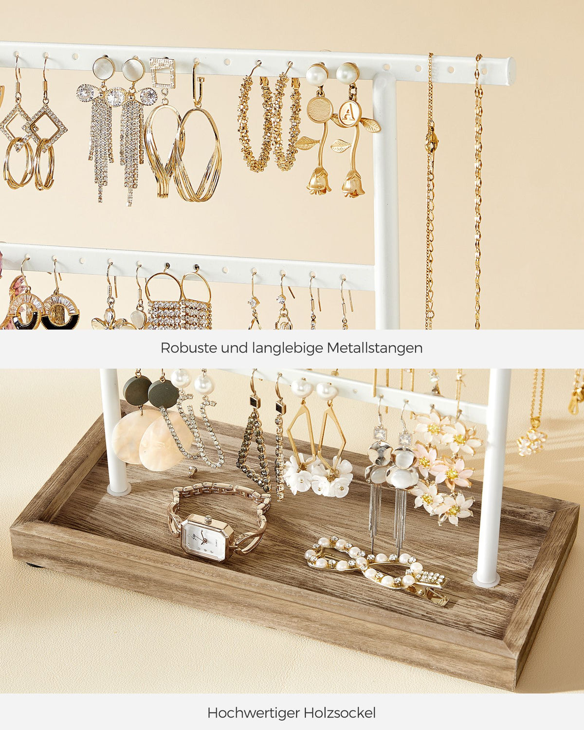 Sieradenhouder met sieradenlade vintage stijl hout-wit 5 x 35 cm