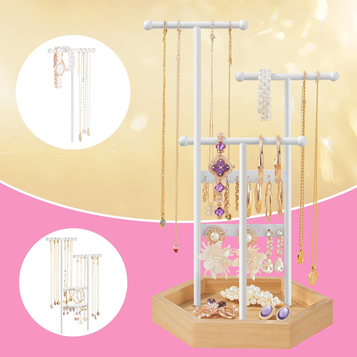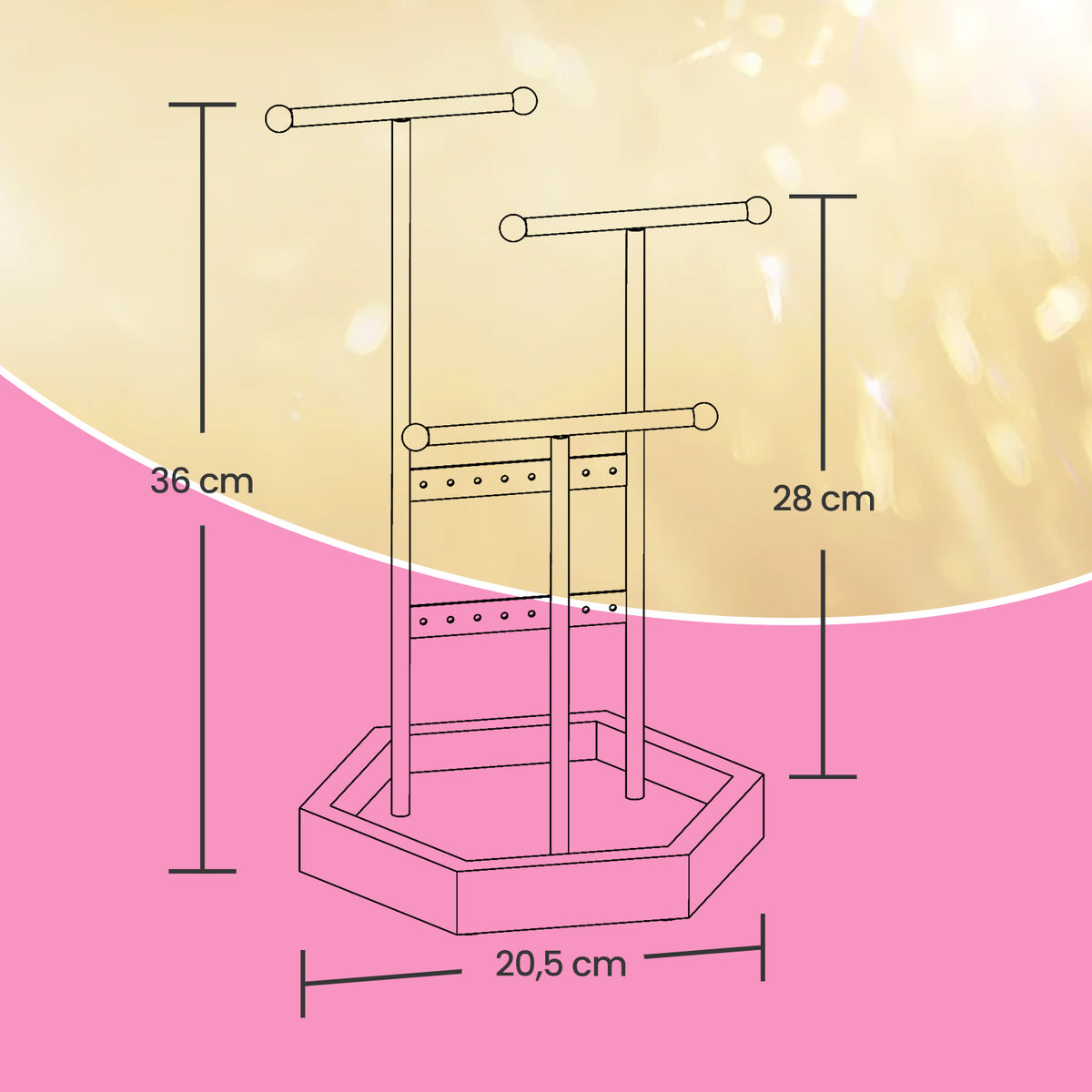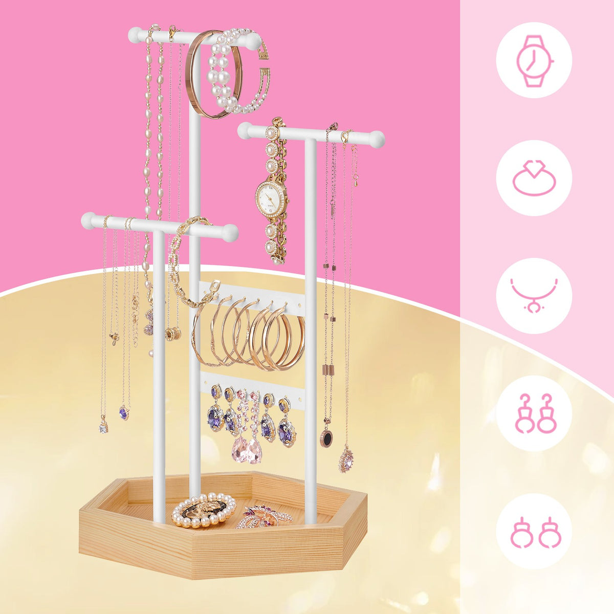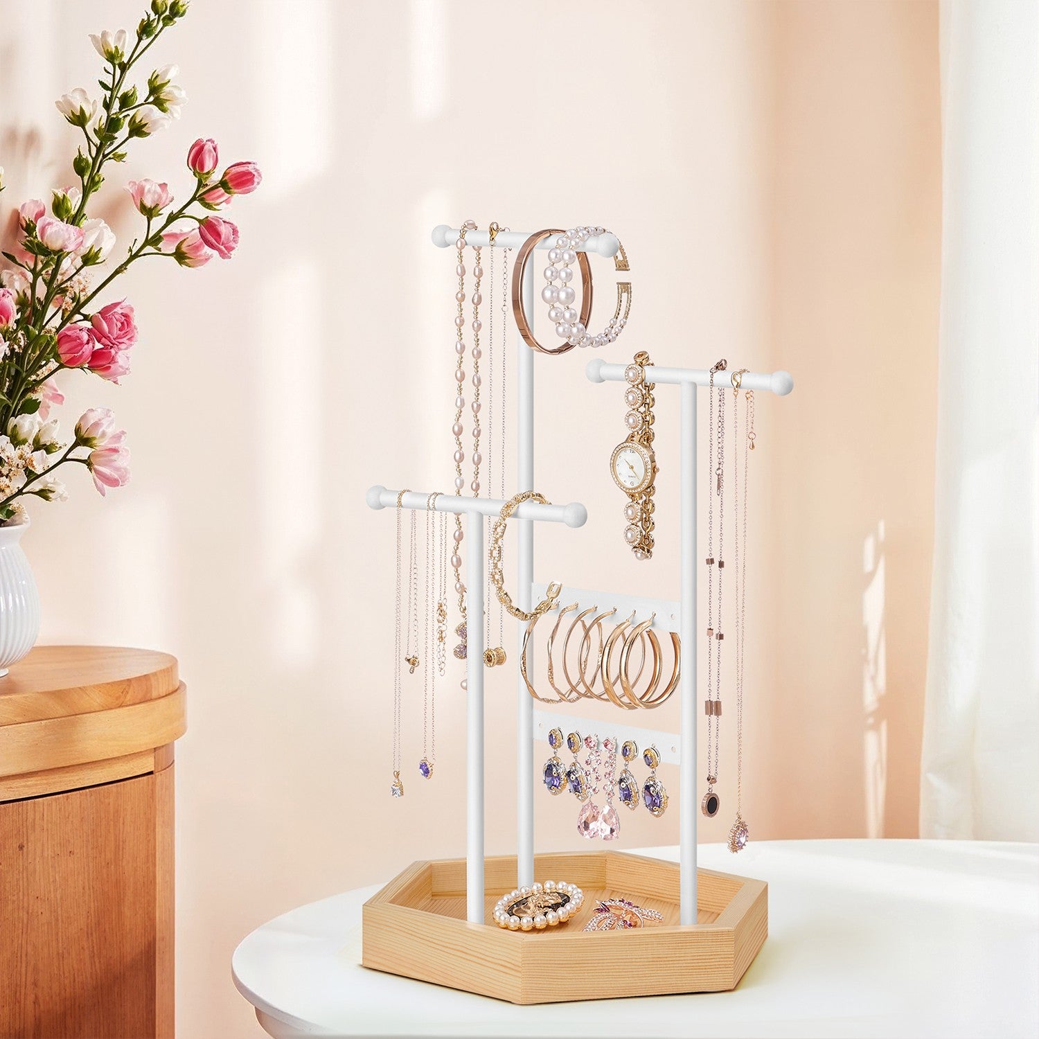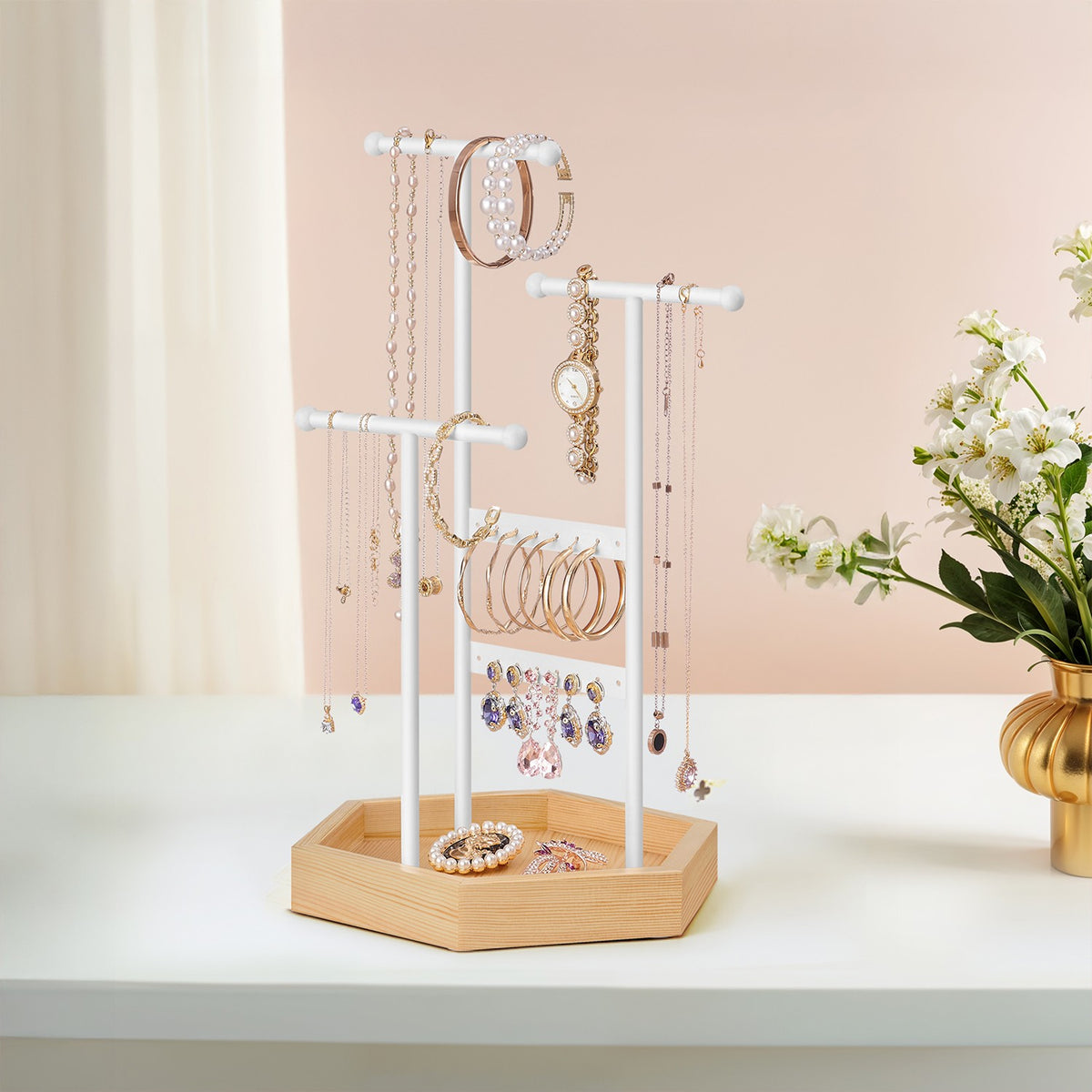 Sieradenhouder van metaal en hout wit 20,5 x 18 x 36 cm