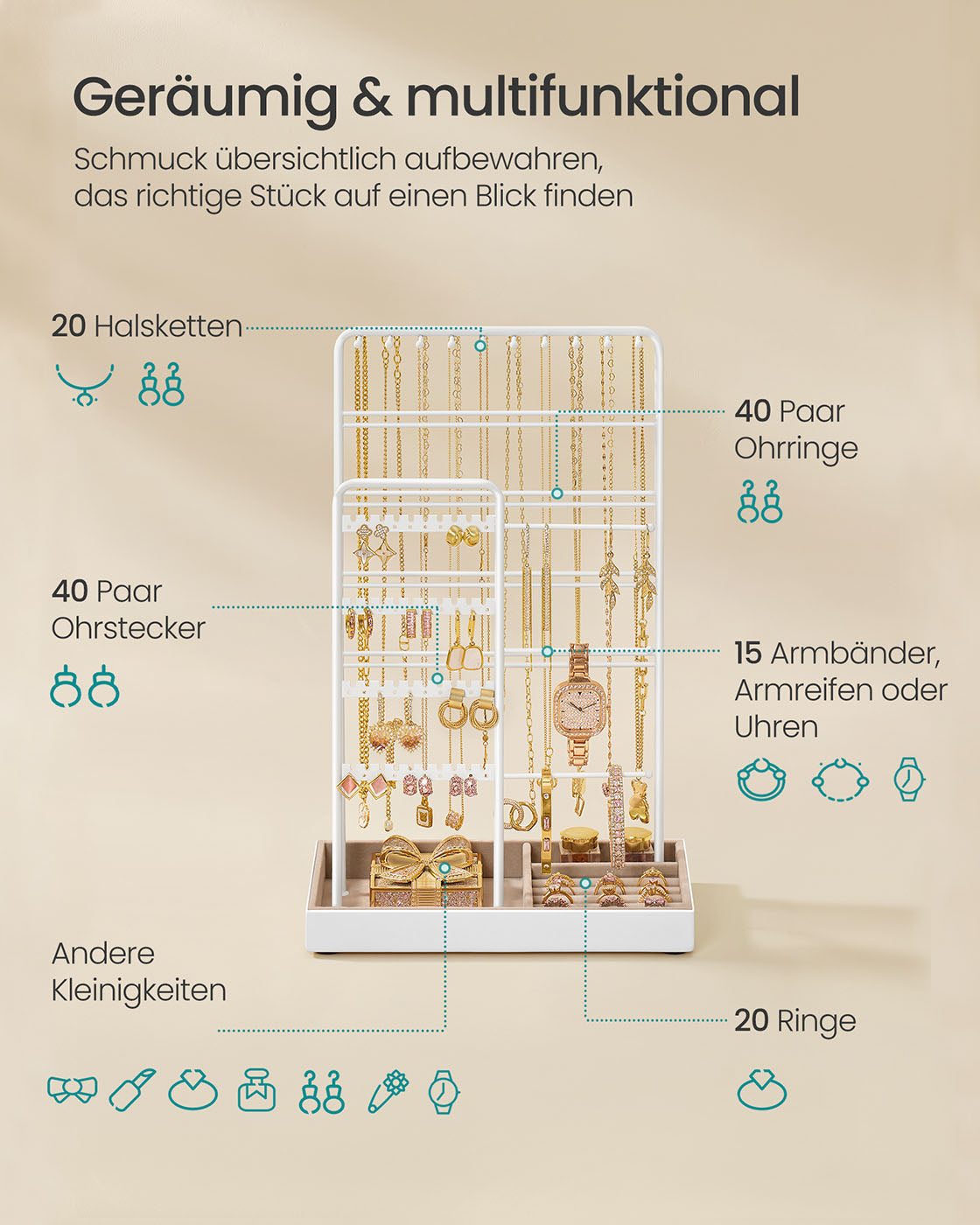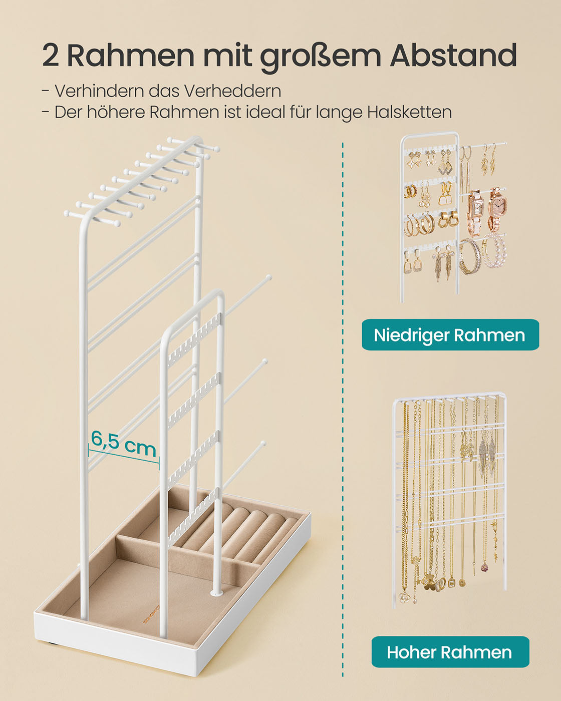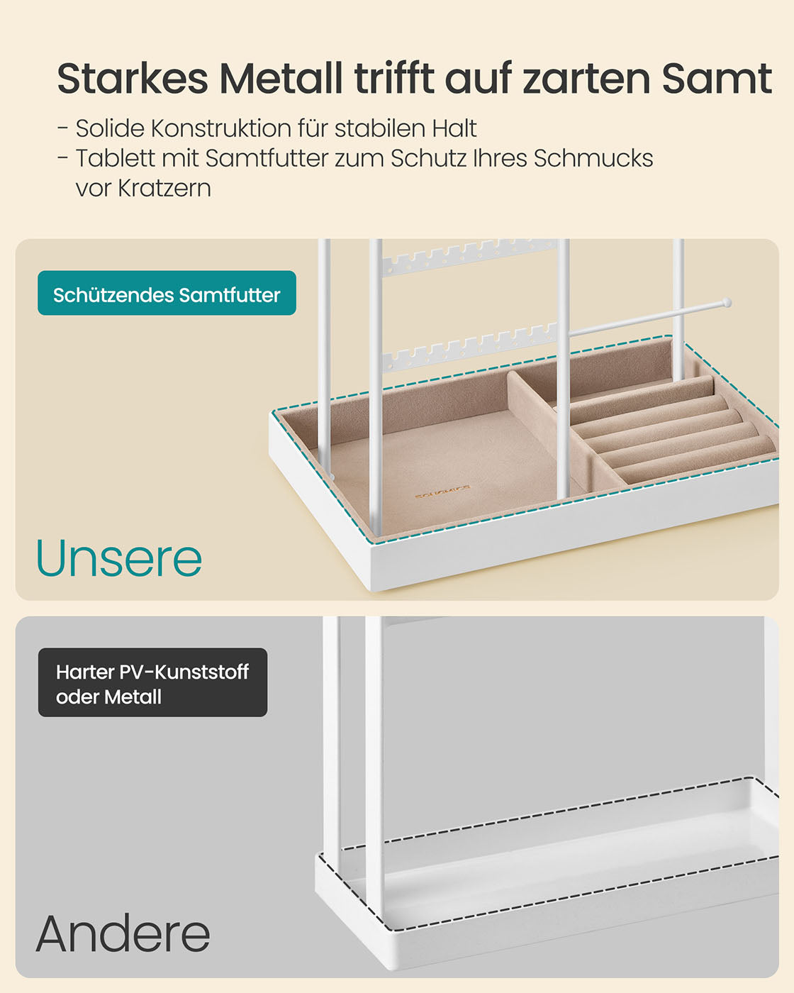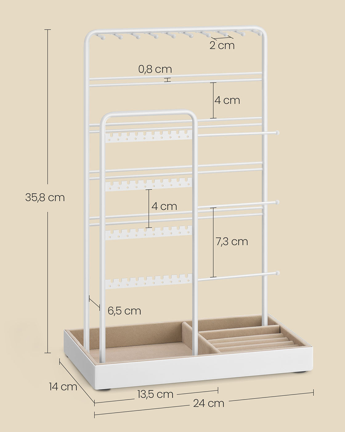 Sieradenstandaard met dienblad van fluweel mat wit-kameelbruin 8 cm
