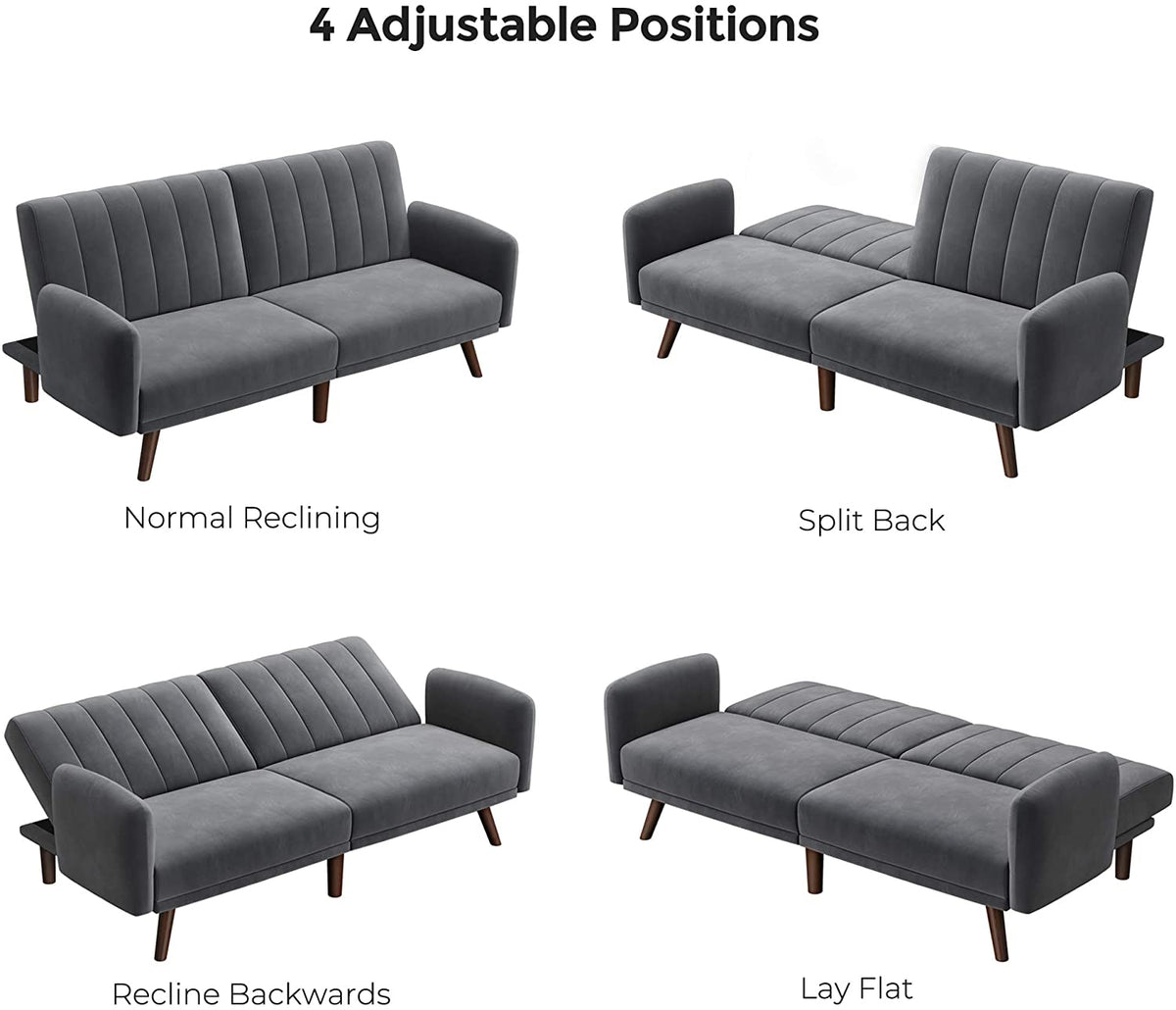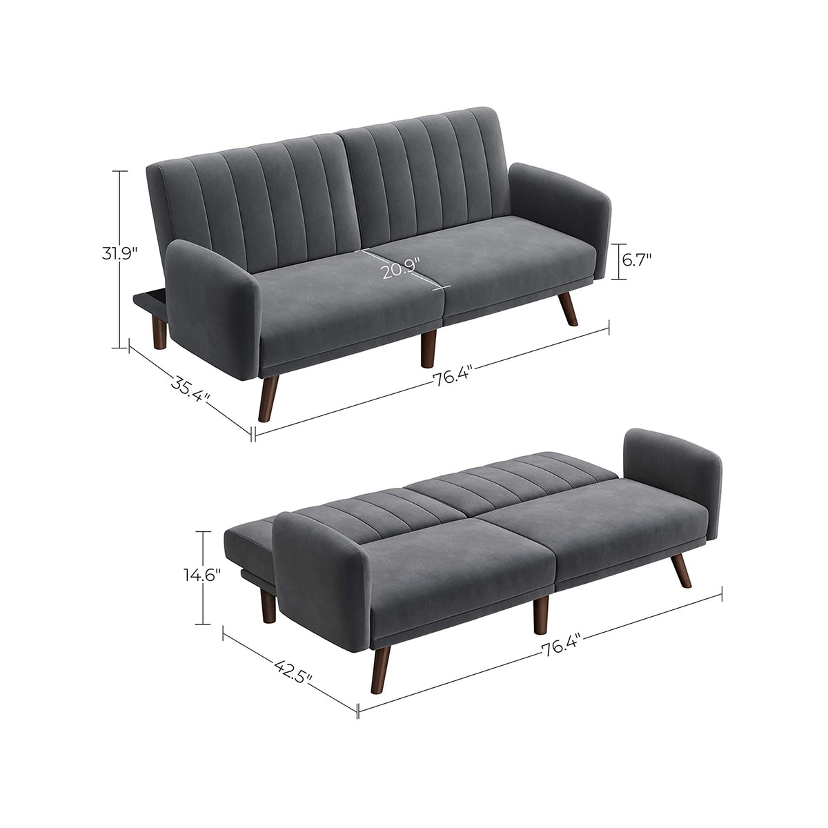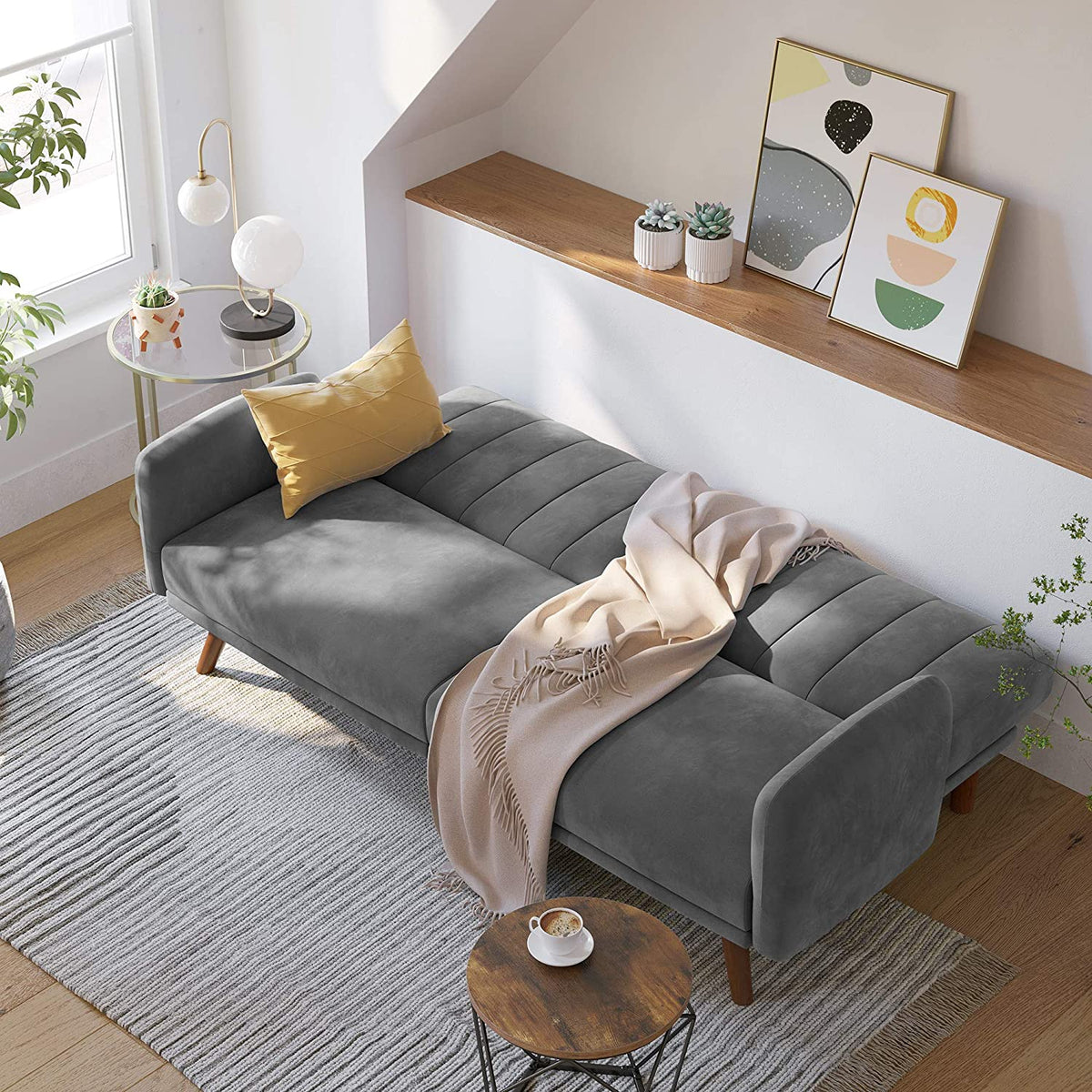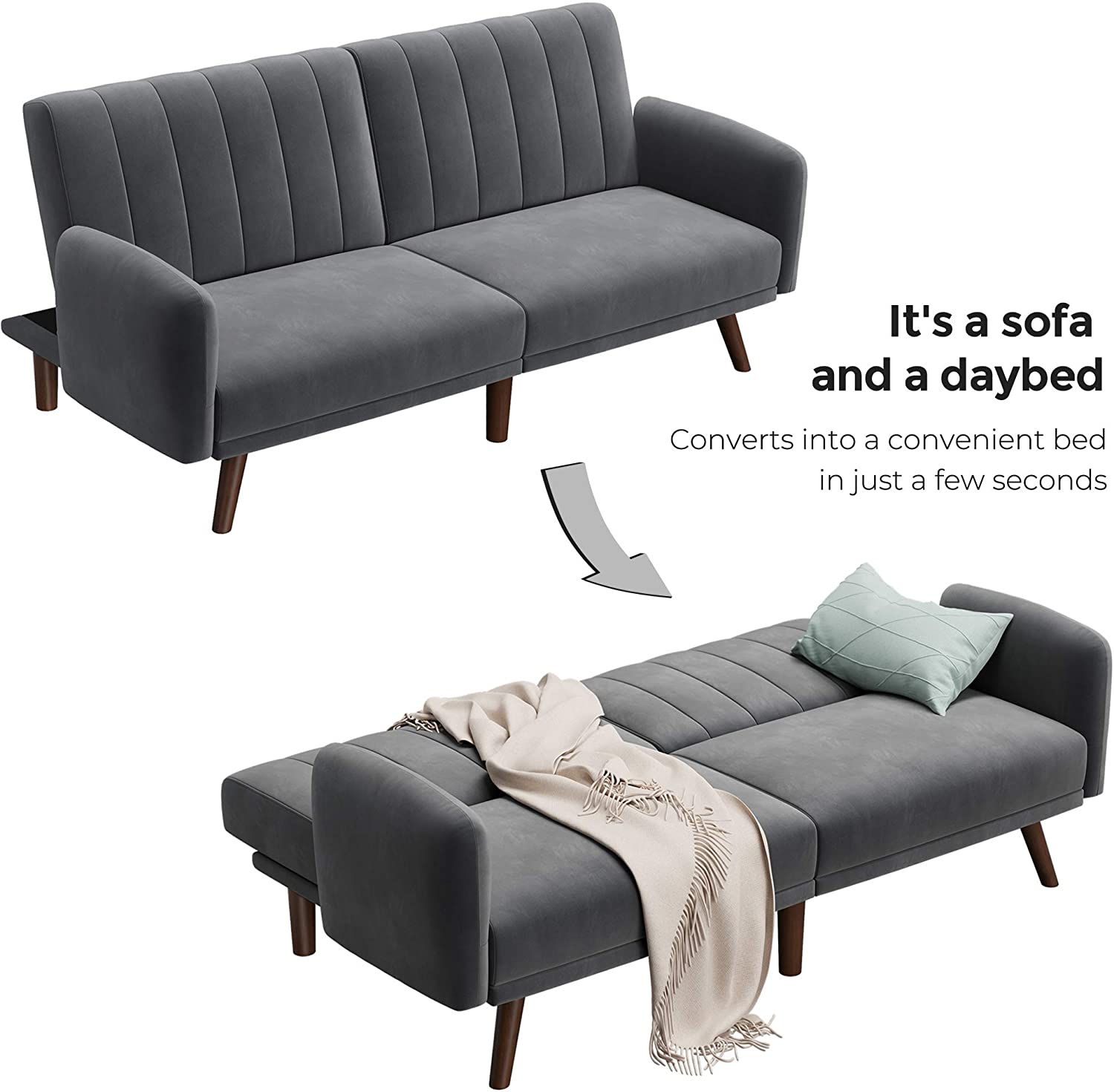 Slaapbank met grijze fluwelen hoes 194 x 90 x 81 cm