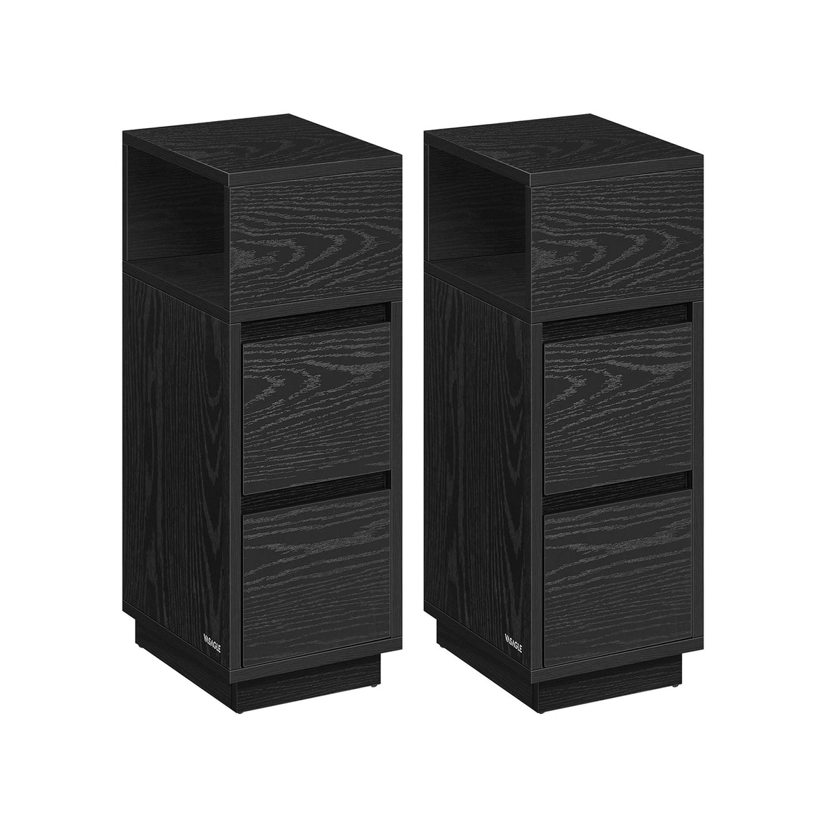 Smal nachtkastje set van 2 met lades ebbenhout zwart 30 x 25 x 65 cm