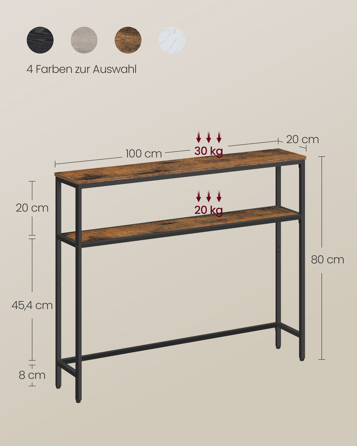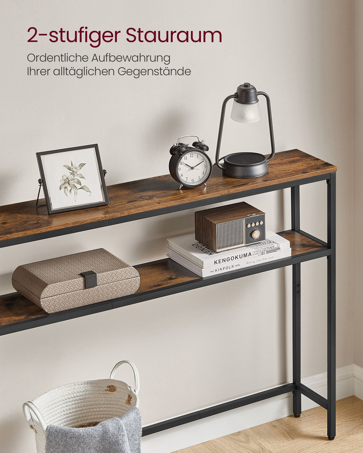 smalle salontafel met 2 planken vintage bruin-inkt zwart 20 x 80 x 80 cm - B34LNT131K01