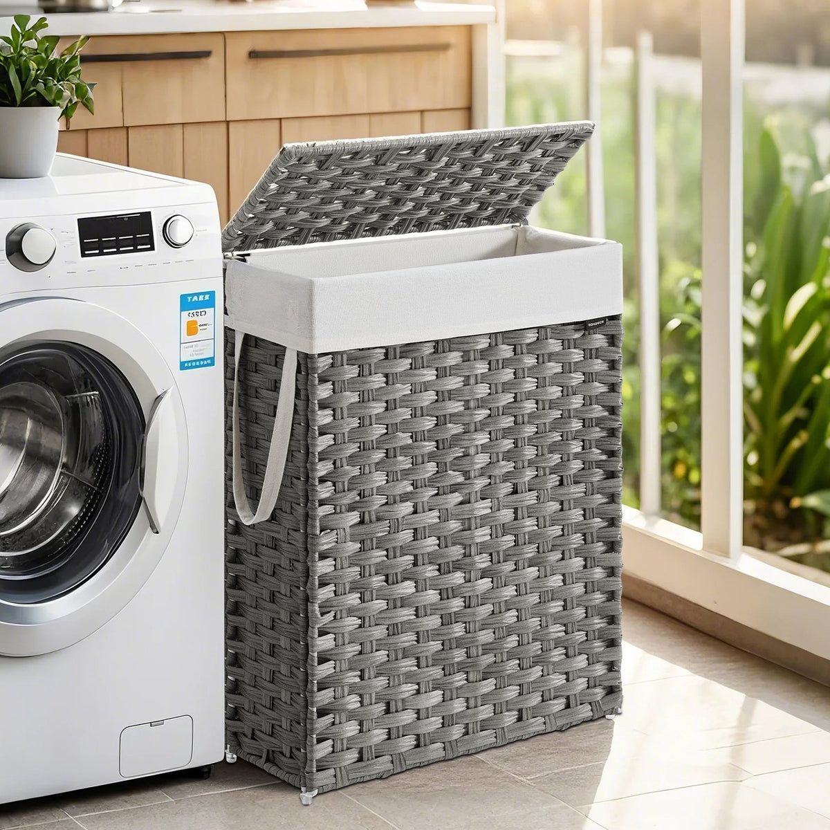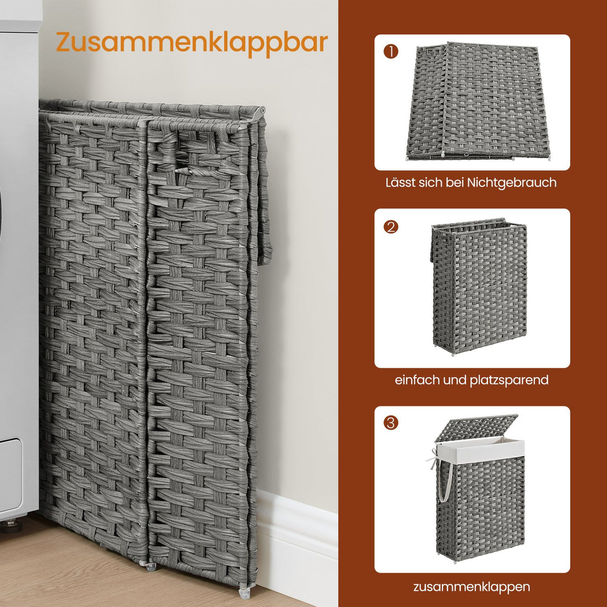 Smalle wasmand, wasverzamelaar 55 L, met deksel en handgrepen 46 x 20 x 61 cm - LCBB35164G01