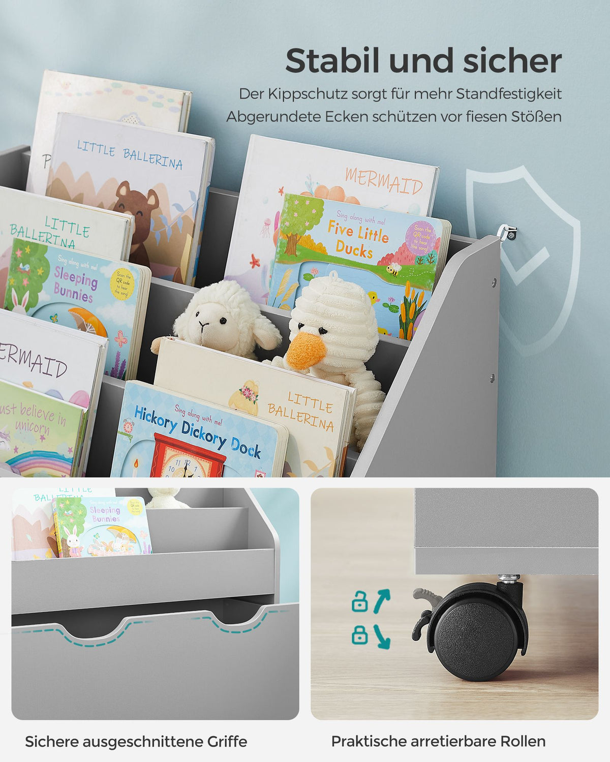 Speelgoedplank met 3 planken op wielen, duifgrijs 5 x 70 cm