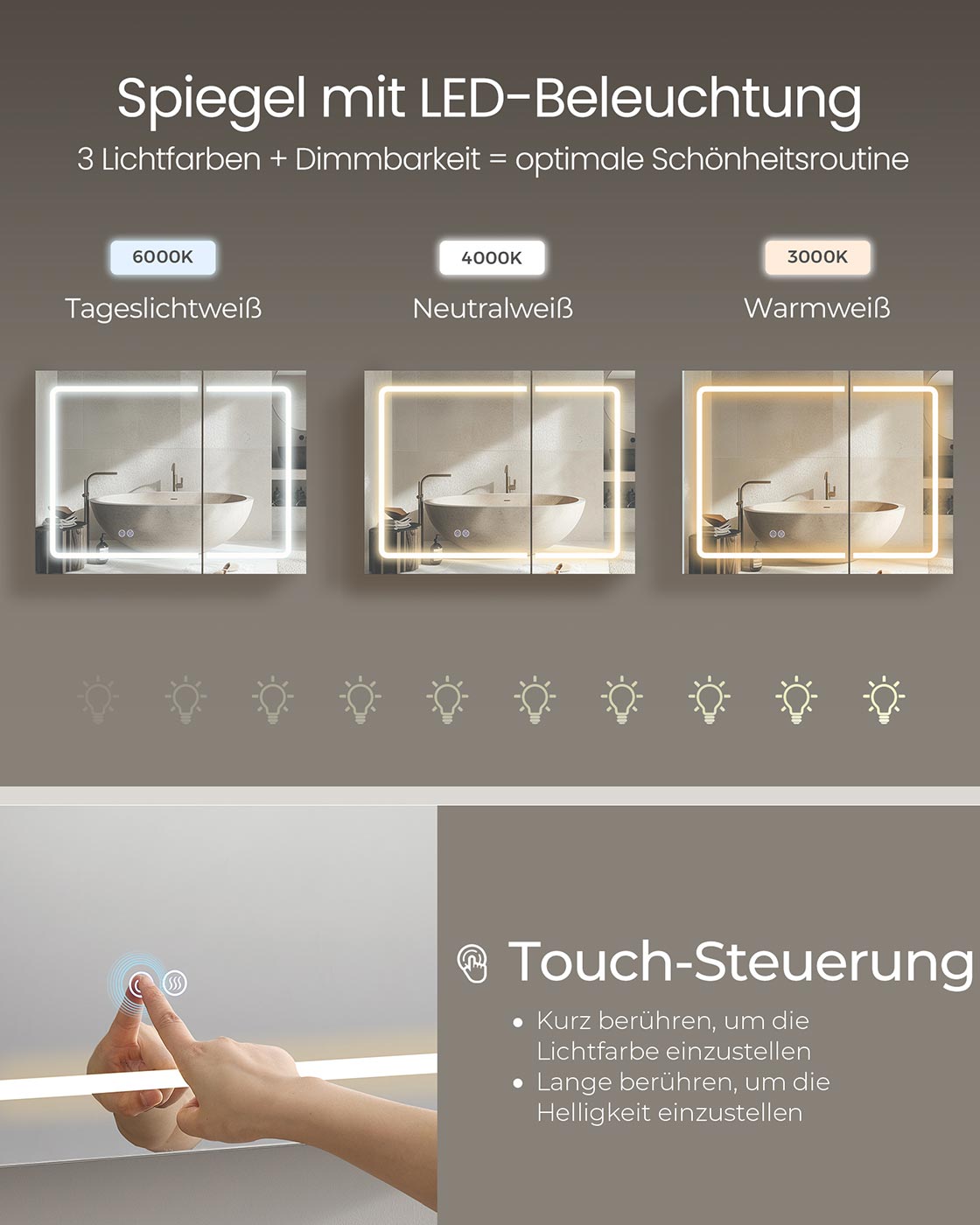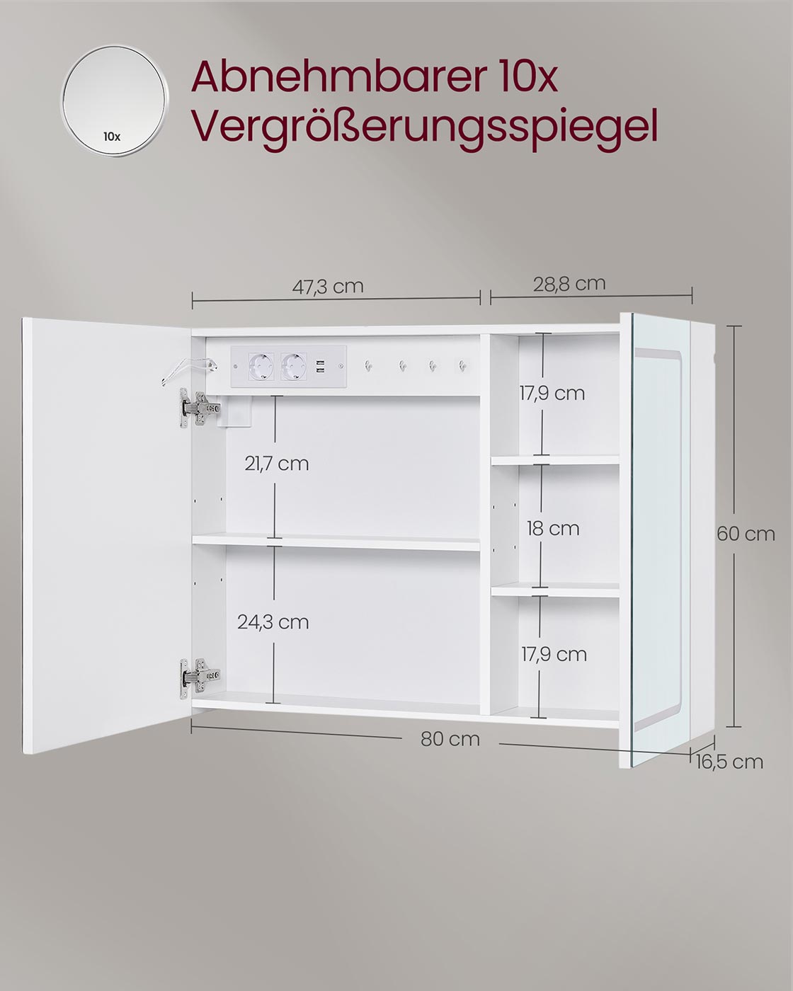 Spiegelkast met verlichting en stopcontact 5 x 50 x 60 cm - BBK134W01