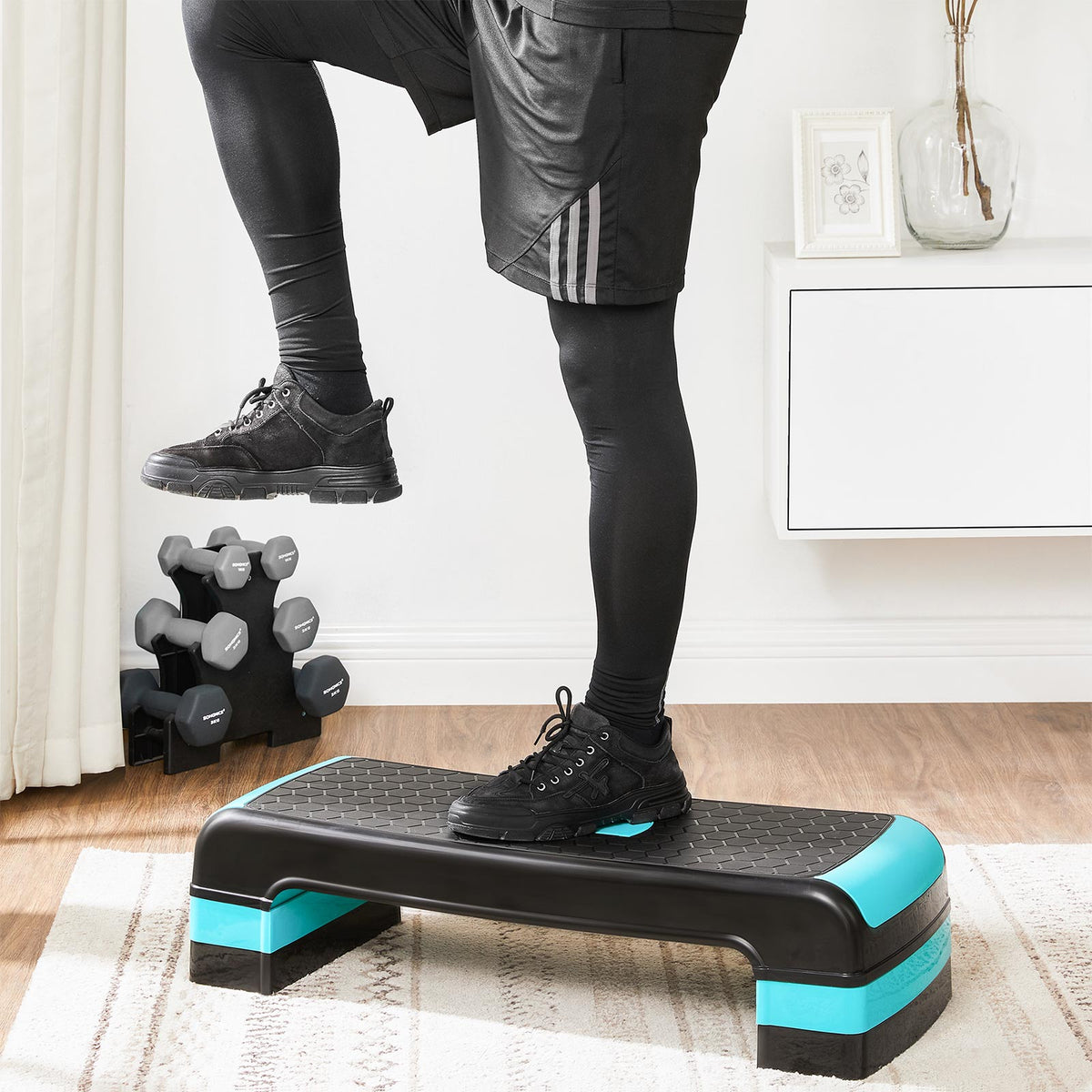 Stepboard voor aerobics zwart-turkooisblauw 10/15/20 cm
