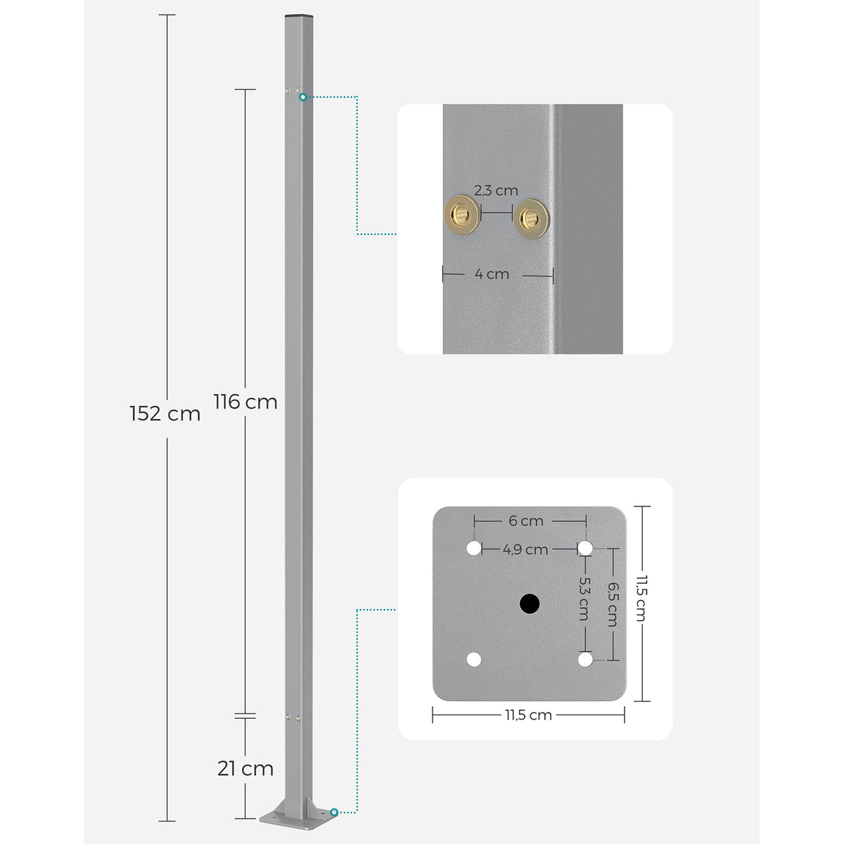 Steunpaal voor luifelkast, alleen geschikt voor Homestorecity enkelzijdige luifel met stalen steunpaal 5 x 152 cm - B34GSA502Y01
