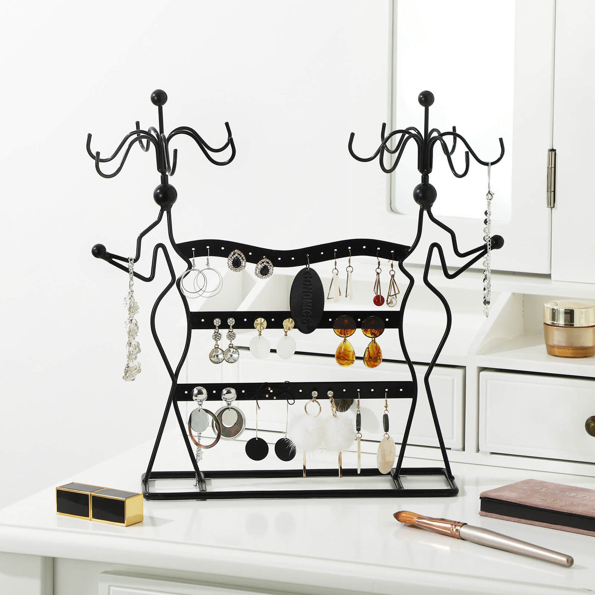 Stijlvolle sieradenstandaard zwart 34,5 x 34 x 12,5 cm