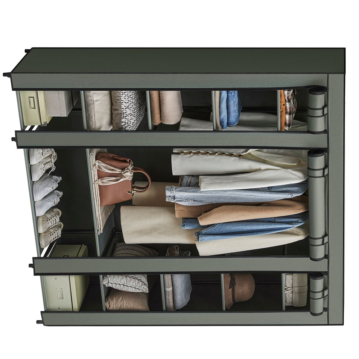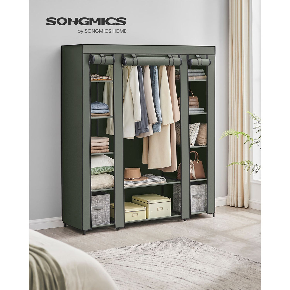 Stoffen kledingkast met kledingroede saliegroen 175 x 150 x 45 cm