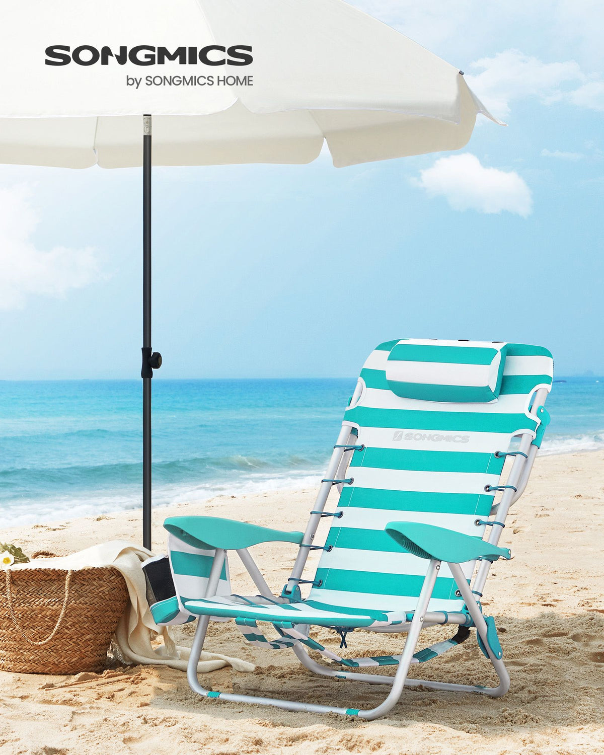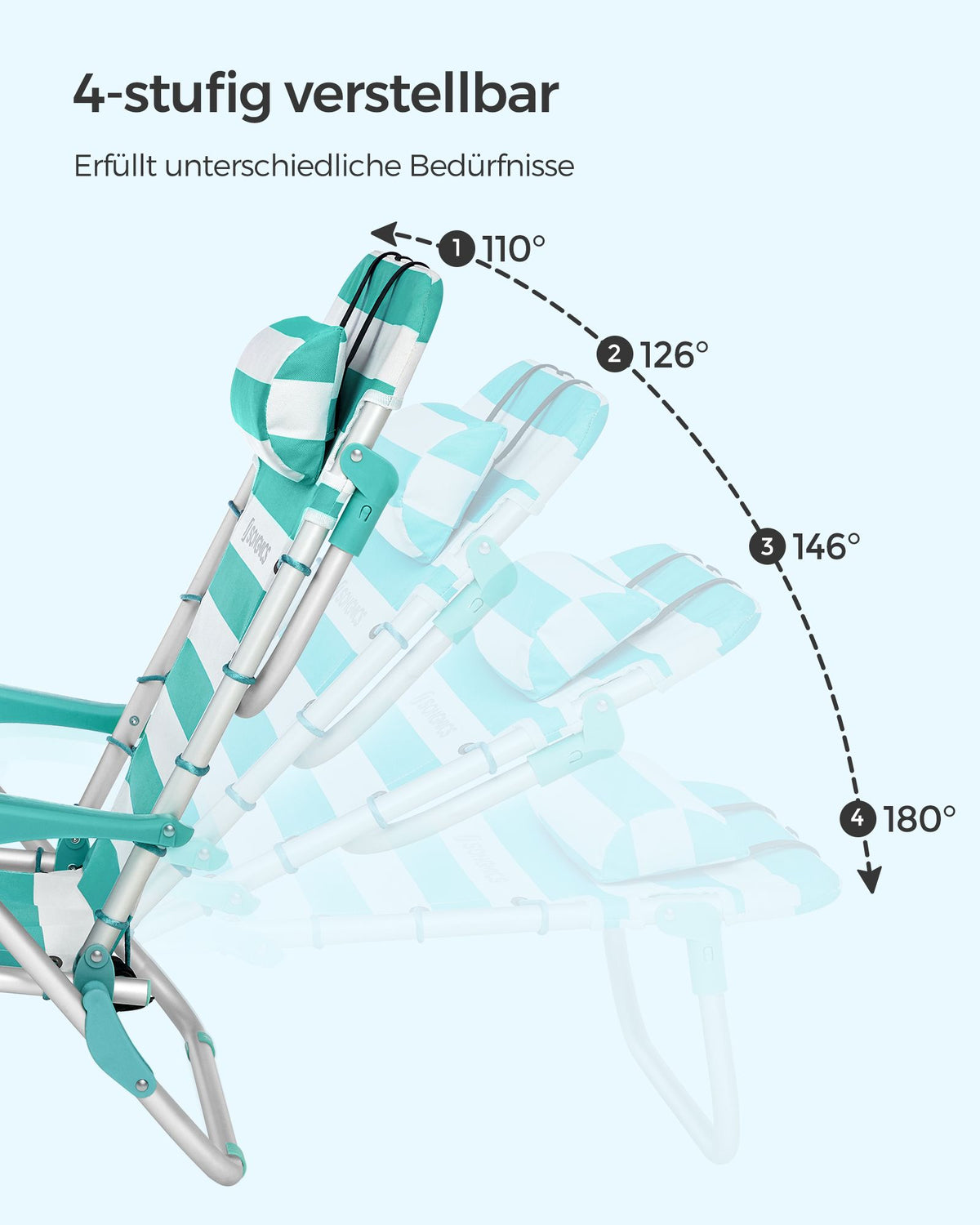 Strandstoel met afneembare hoofdsteun, set van 2, groen-wit gestreept 68 x 63 x 75 cm
