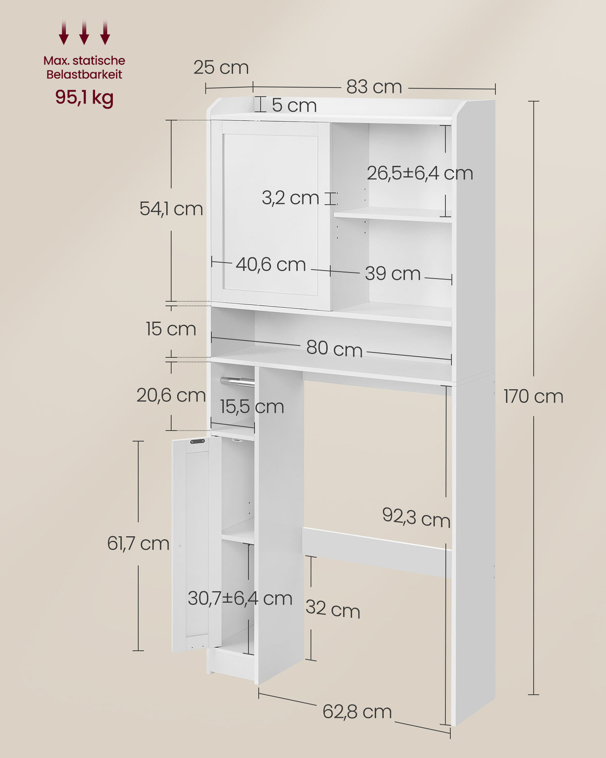 Toiletplank met schuifdeur 25 x 83 x 170 cm wolkenwit